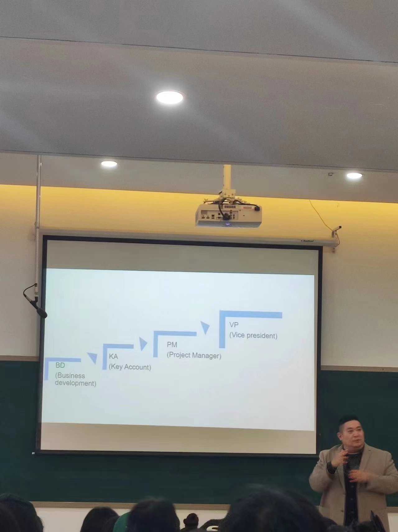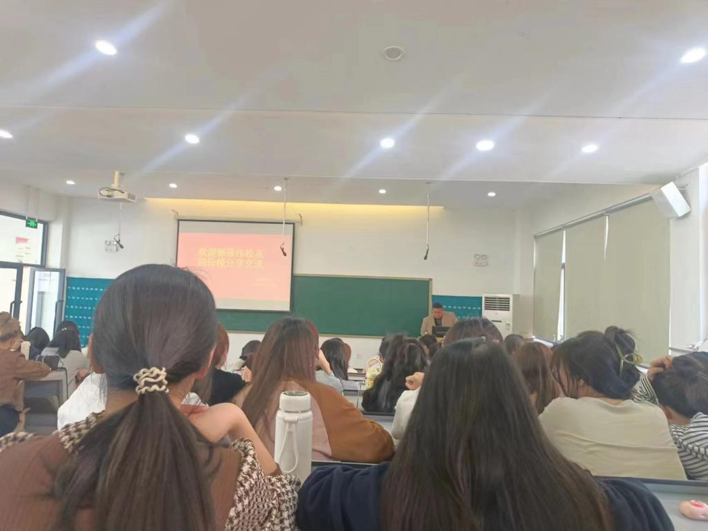 在讲座中,郭强伟校友以“浅谈外语系-外贸职业发展规划”为题,为即将走向社会、迈向职场的同学们提供了宝贵的建议。他深入浅出地剖析了外贸就业趋势、传统外贸与海外电商的差异、传统外贸业务流程以及外贸人员的职业规划和归宿。