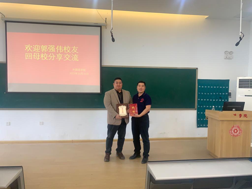 10月31日下午,在华亿体育登录建校30周年之际,外国语学院2001届优秀毕业生,现任肥翠郭珠宝有限公司创始人兼CEO郭强伟校友,莅校为学弟学妹们带来了一场别开生面的交流分享。