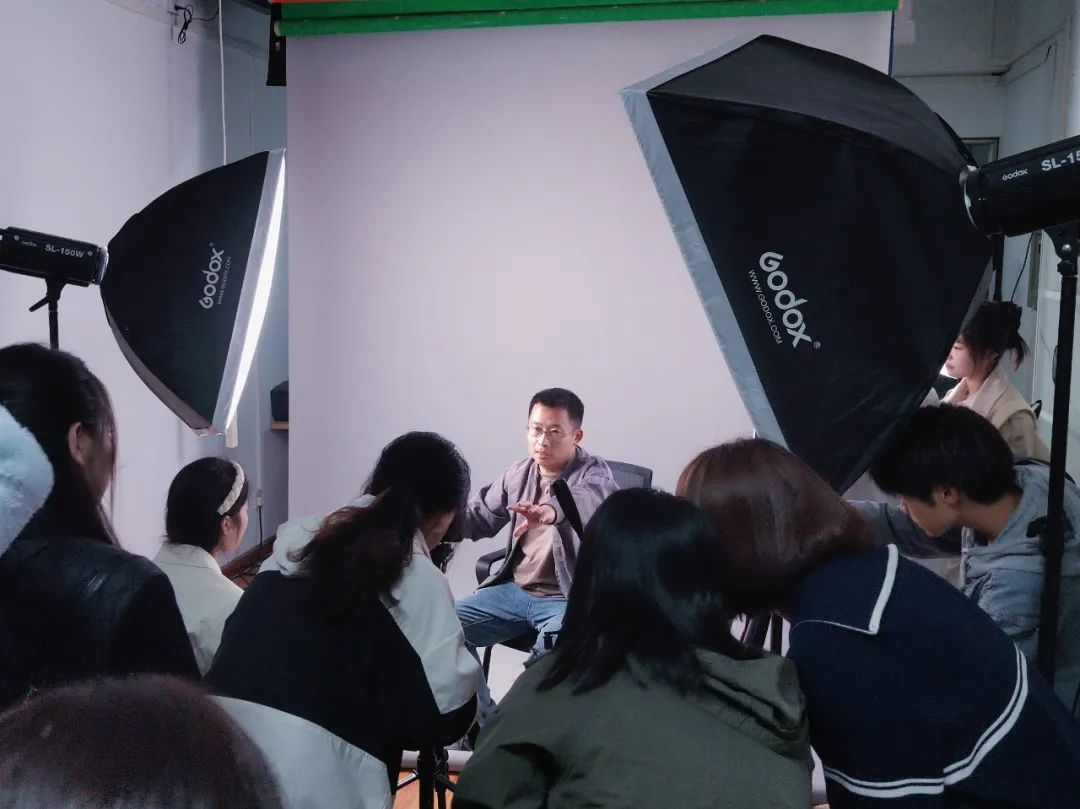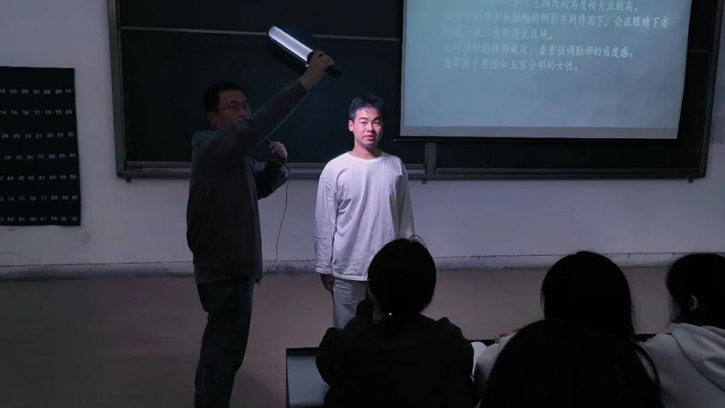 讲座中,刘栋杰讲述了摄影的用光和构图、视频创作思维与逻辑、视频剪辑基础知识及技巧等。课堂上,刘栋杰还组织学生上台尝试,亲身体验不同角度的打灯、拍摄效果。