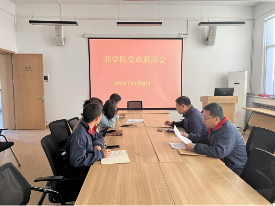 12月8日上午,商学院在教学楼2号楼315会议室召开党政联席会议,出席会议的有院长白朋飞、院党委书记郭峰、教学秘书马巧丽、行政秘书郗艳花、组织员杨利凯、党委委员汪俊枝、胡好好。