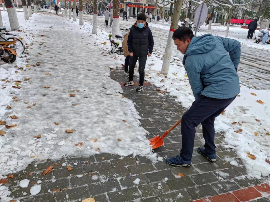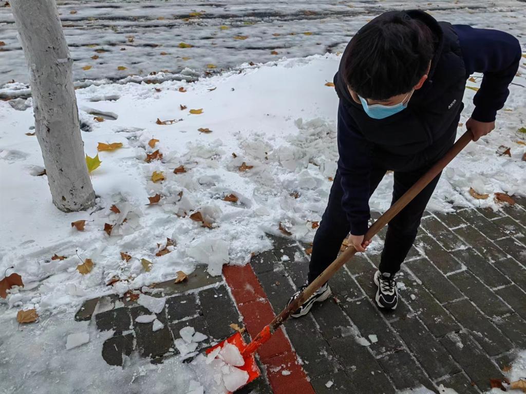 为快速清除路面积雪,保障校园道路畅通,大家齐心协力,推、铲、扬、堆,各种方法齐上阵,为全校师生开辟一条条洋溢着暖暖温情的方便之路。大家都在白雪皑皑的世界里,热火朝天地清扫大雪。通红的脸颊彰显着劳动青春的风采。以劳树德,知行合一。此次扫雪除冰行动是一堂真实而生动的劳动教育实践大课,学院老师们奋斗在前,带头引领,大家出力流汗、磨炼意志。