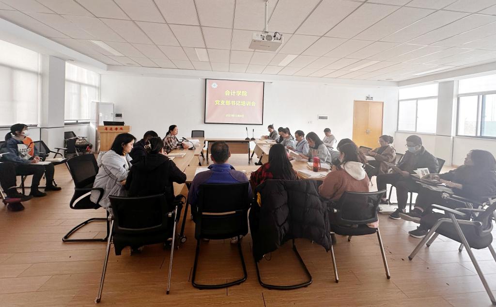2023年12月8日上午,会计学院召开党支部书记培训会,会议由院党委书记张蕾主持,学院党委组织员和全体党支部书记参加。