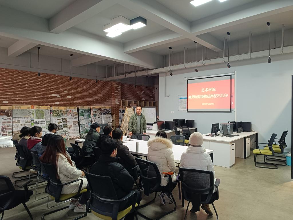 为更好实现我校应用型人才培养目标,提高人才培养质量,2023年12月12日下午,艺术环境设计教研室组织部分骨干教师和学生代表在艺术楼205开展教师挂职锻炼总结交流会,张华老师做主题交流和分享。