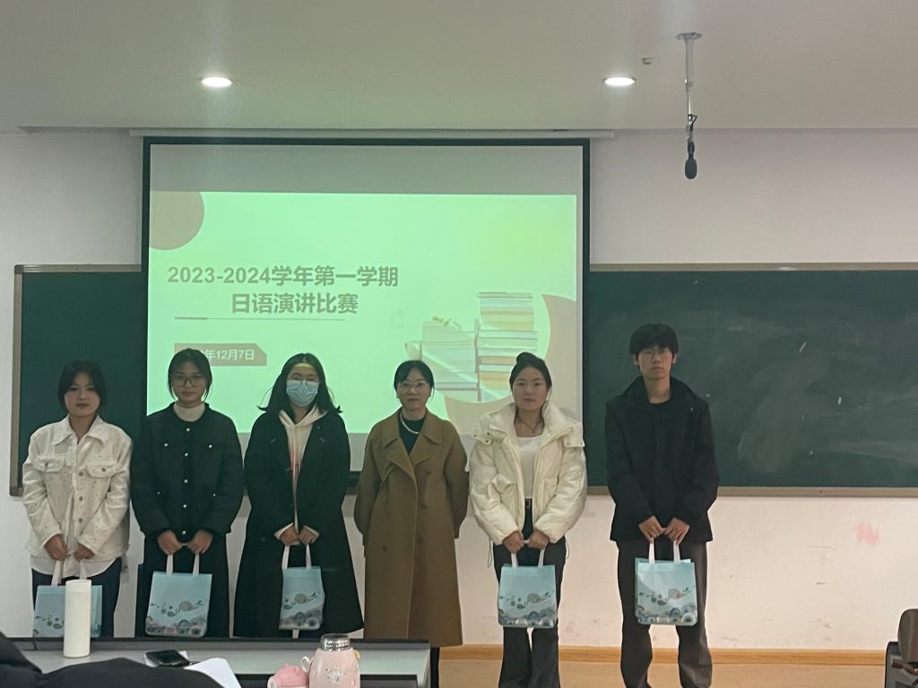 2023年12月7日,外国语学院日语专业在教学一号楼109教室举办2023年日语演讲比赛。日语教研室的张峰老师、张宝红老师、张彬老师、洪艳荣老师、马林娜老师等5名中教,以及外教五十岚拓道老师到场做评委,教研室主任张峰老师主持此次比赛。