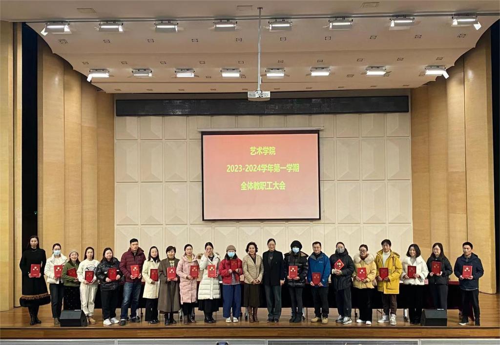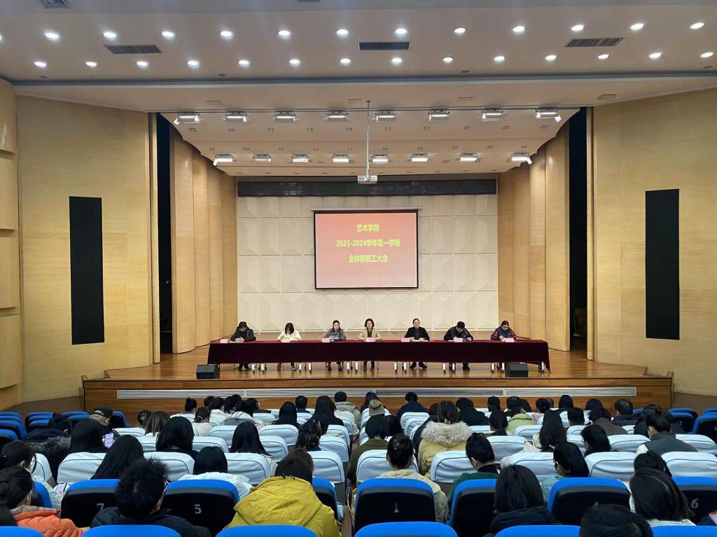 2024年1月4日下午,艺术学院在音乐厅召开了2023-2024学年第一学期全体教职工大会,学院院长吴柏林、党委书记张小雁、副院长池浩东、副院长夏瑞芳,以及学院全体教职工均参加了会议,会议由教学秘书王鑫主持。