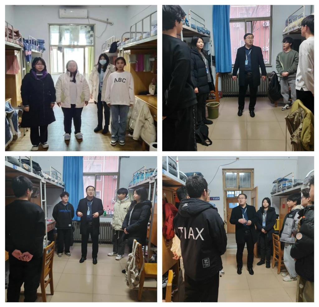 为进一步查看基础部学生的生活状况以及加强学生的宿舍安全卫生教育及管理,创建安全、整洁、文明的生活环境,于1月3日及1月4日,张志银书记及辅导员李明明老师深入宿舍看望学生,给予学生亲切的关怀和殷殷嘱托。