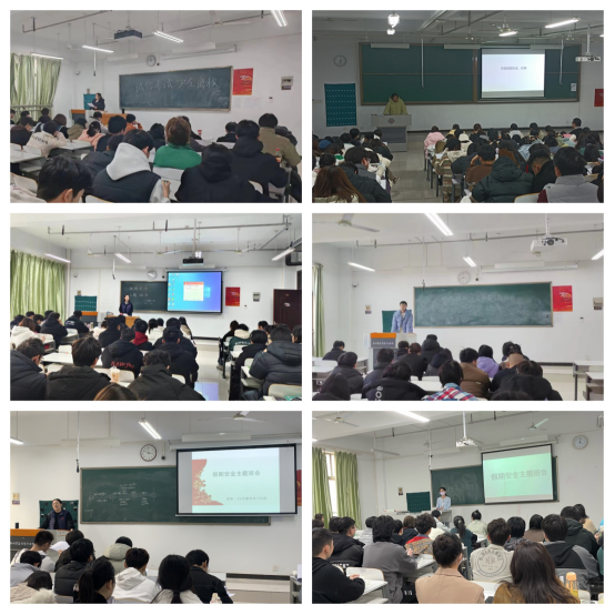 各辅导员老师从财产安全、消防安全、人身安全、网络安全、精神文明建设等方面对全体学生进行了教育。班会主要内容有:第一、注意外出活动及交通安全,及时报备离校动向,严格遵循离校去向登记制度,外出路上遵守交通规则,不乘坐无证车,不酒驾;第二、学习防火、防电、防煤气中毒等安全知识,不在危险的地方玩耍,不做任何带有危险性的游戏;第三、假期自觉遵守属地爆竹燃放规定,不违规燃放;第四、文明聚会,不酗酒滋事;第五、牢固树立法治意识,增强法治观念;第六、防范网络诈骗,增强经济安全防范意识。最后,辅导员老师们向全体学生强调寒假期间要合理安排自己的时间,养成良好的生活习惯,通过阅读、运动、参加社会实践等来充实自己的假期生活。