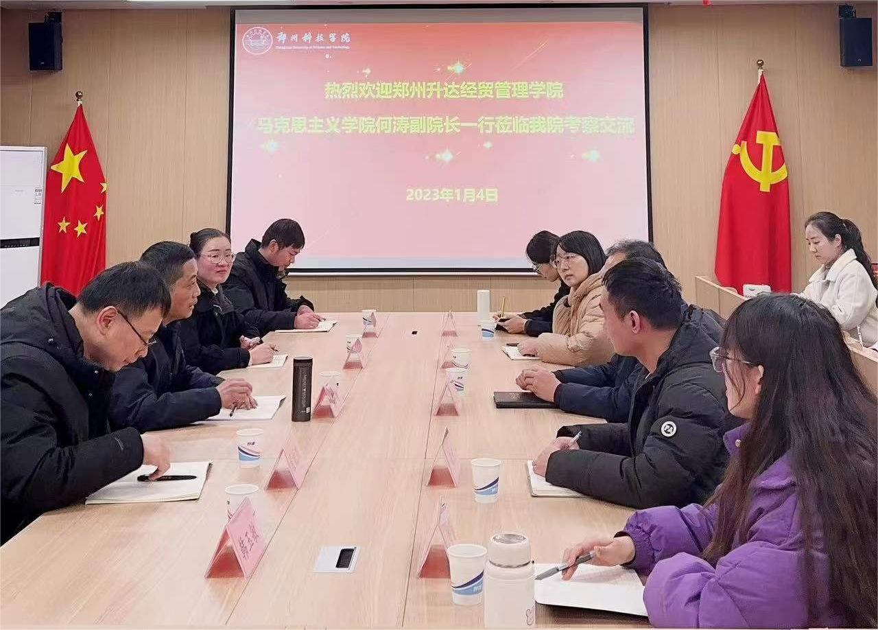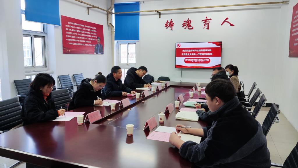 为深入了解学习2023年河南省首批示范性马克思主义学院(以下简称马院)的成功申报经验,查找我校马院建设存在的问题和不足,进一步促进马院自身建设,我校马院在校领导的大力支持下,于2023年12月28日至2024年1月5日,由何涛副院长带队,六个教研室主任和部分教师代表参与,分别对黄河交通学院、商丘工学院、中原工学院、郑州西亚斯学院、郑州科技学院和郑州工商学院等六所首批示范性马院进行了实地考察调研。