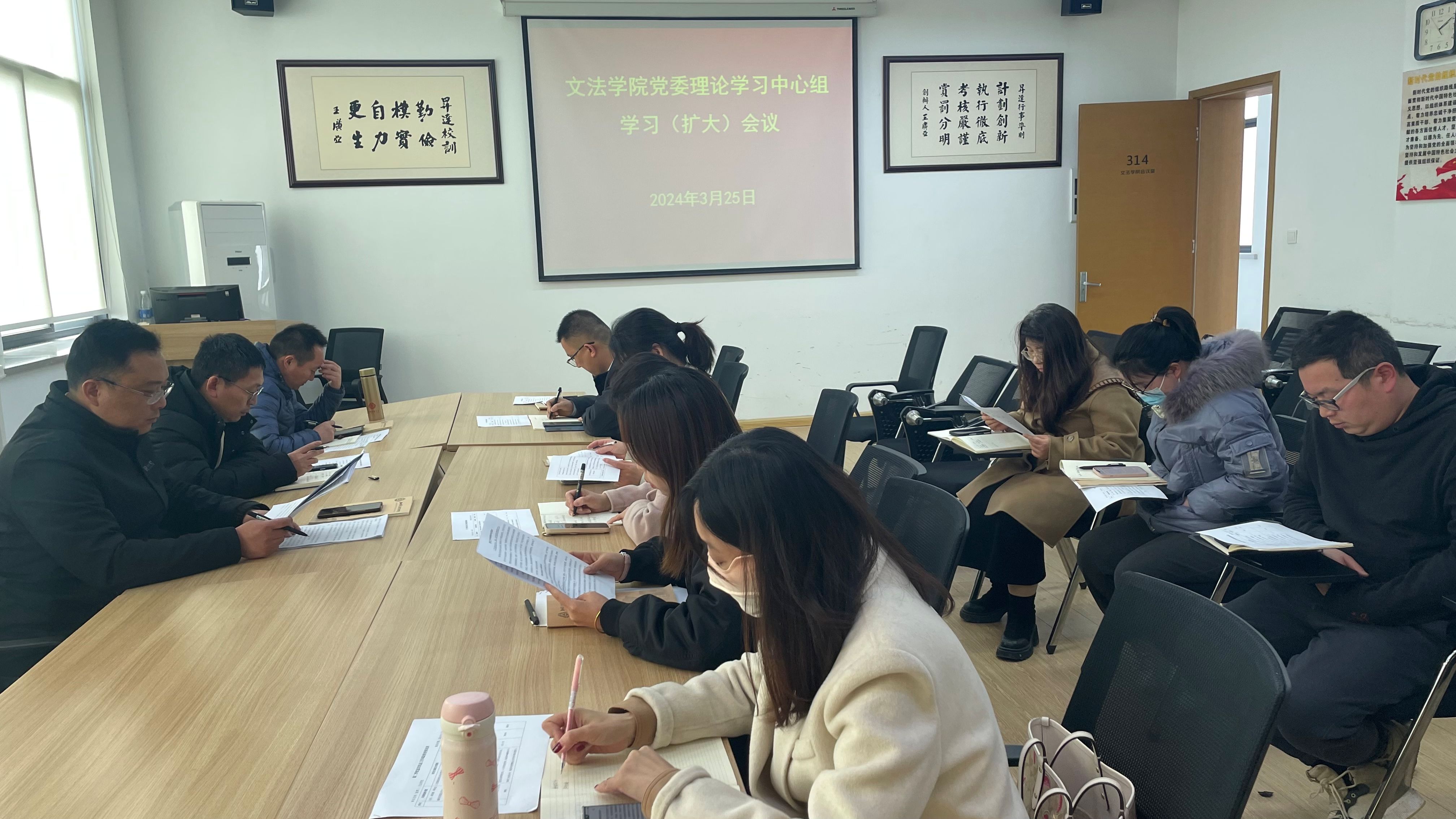 3月25下午,文法学院党委在教学1号楼314会议室召开党委理论学习中心组学习扩大会,学院党委委员、各党支部书记和组织员参加会议,会议由学院党委书记刘晓川主持。