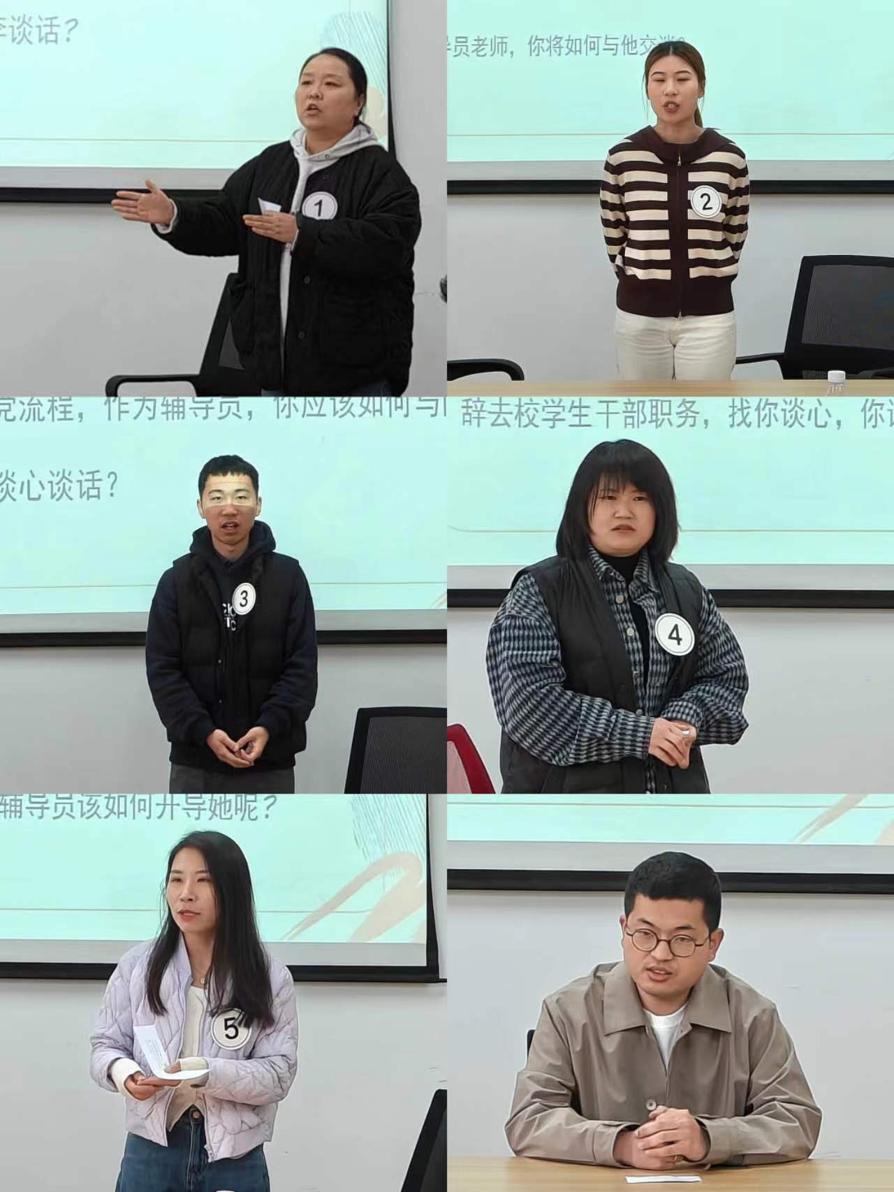 在比赛结束后,石皓召书记对辅导员们的表现给予了高度评价,他认为参赛辅导员们在比赛中展现出了良好的精神风貌和职业素养。同时,石皓召书记、张颢老师、王娟老师、罗志懿老师也针对辅导员们的表现提出了宝贵的意见和建议,希望他们在今后的工作中不断提升自己,更好地服务学生成长成才。