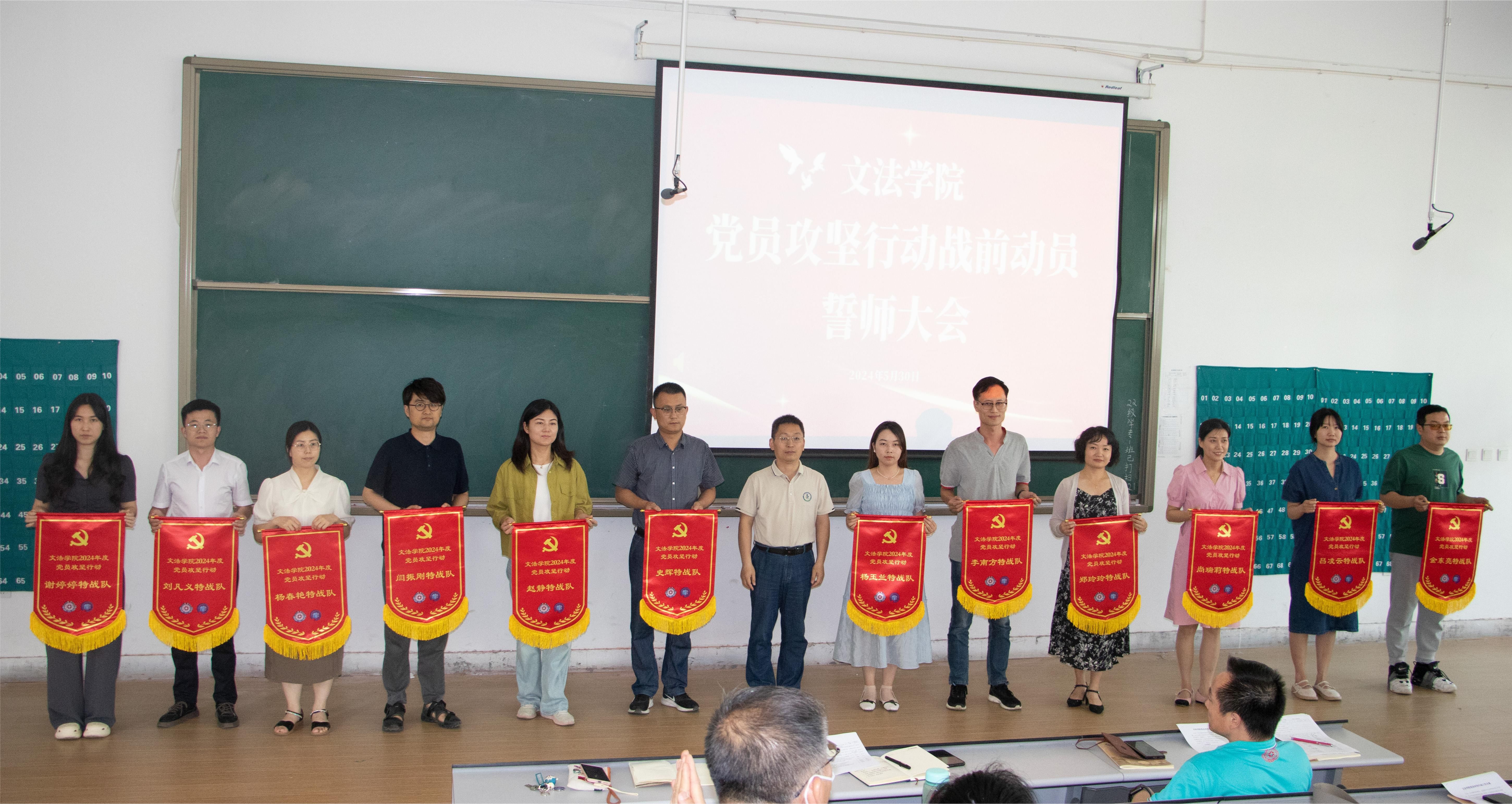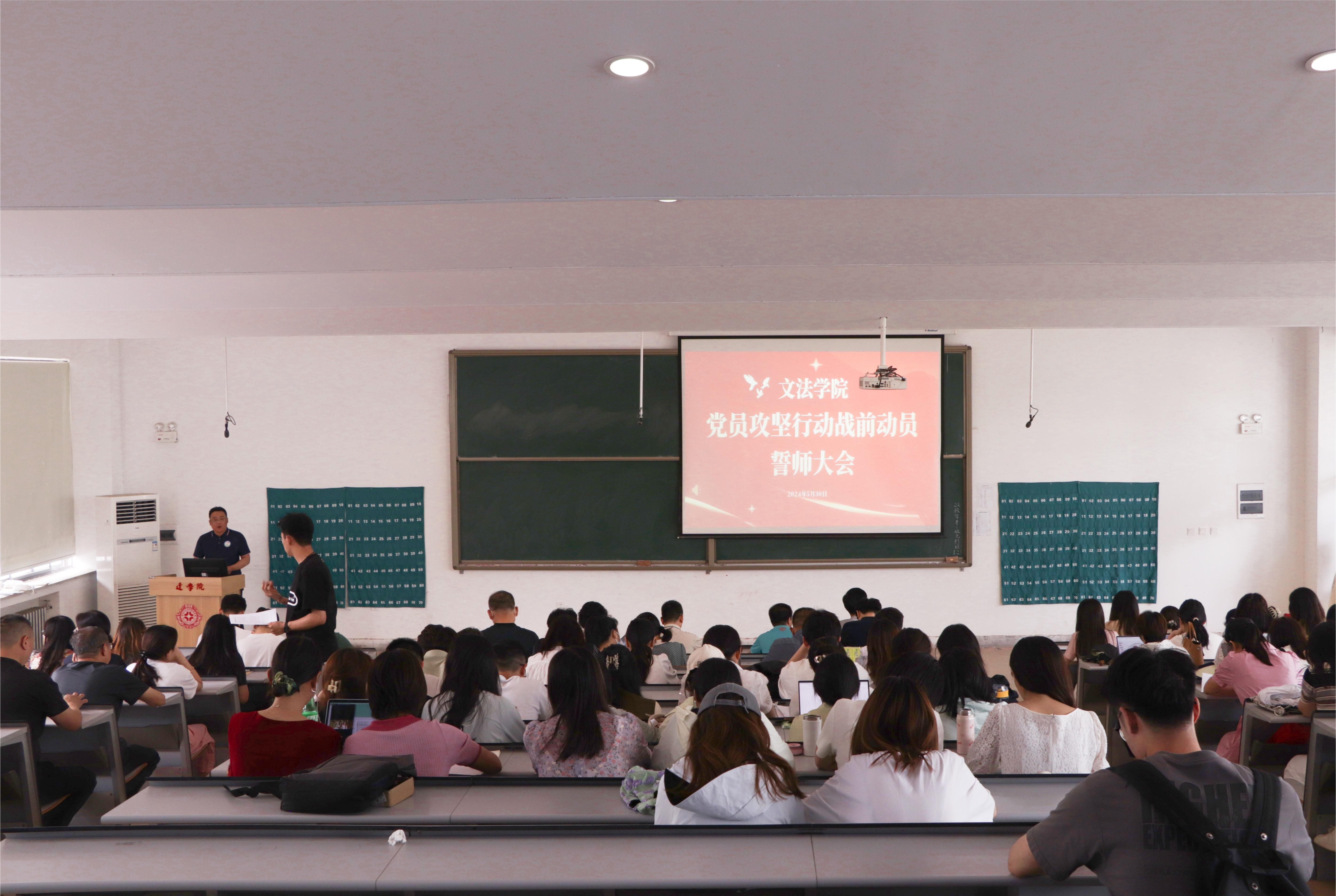 为进一步加强党的领导,全面提升文法学院各项工作质量,5月30日,文法学院在教学1号楼118教室组织召开2024年度党员攻坚行动战前动员誓师大会,学院领导班子成员和全体教职员参加会议,会议由学院党委书记刘晓川主持。