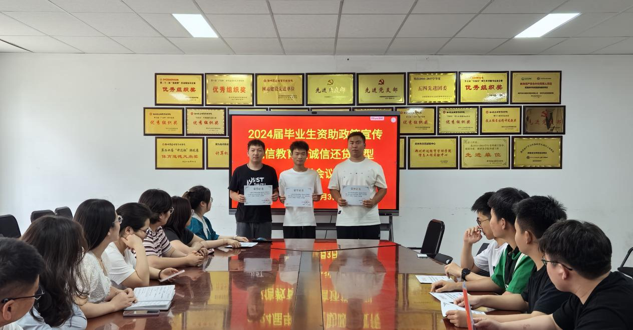 为进一步增强毕业生诚信还款意识,帮助毕业生掌握还款知识和流程,营造良好的诚信氛围,信工学院于6月3日在资讯楼104会议室召开了2024届毕业生资助政策宣传、诚信教育暨诚信还贷典型表彰会议,会议由学院资助专员胡若男老师主持,毕业班辅导员代表,部分贷款毕业学生代表和“诚信还贷优秀大学生”荣誉称号获得者参加了会议。