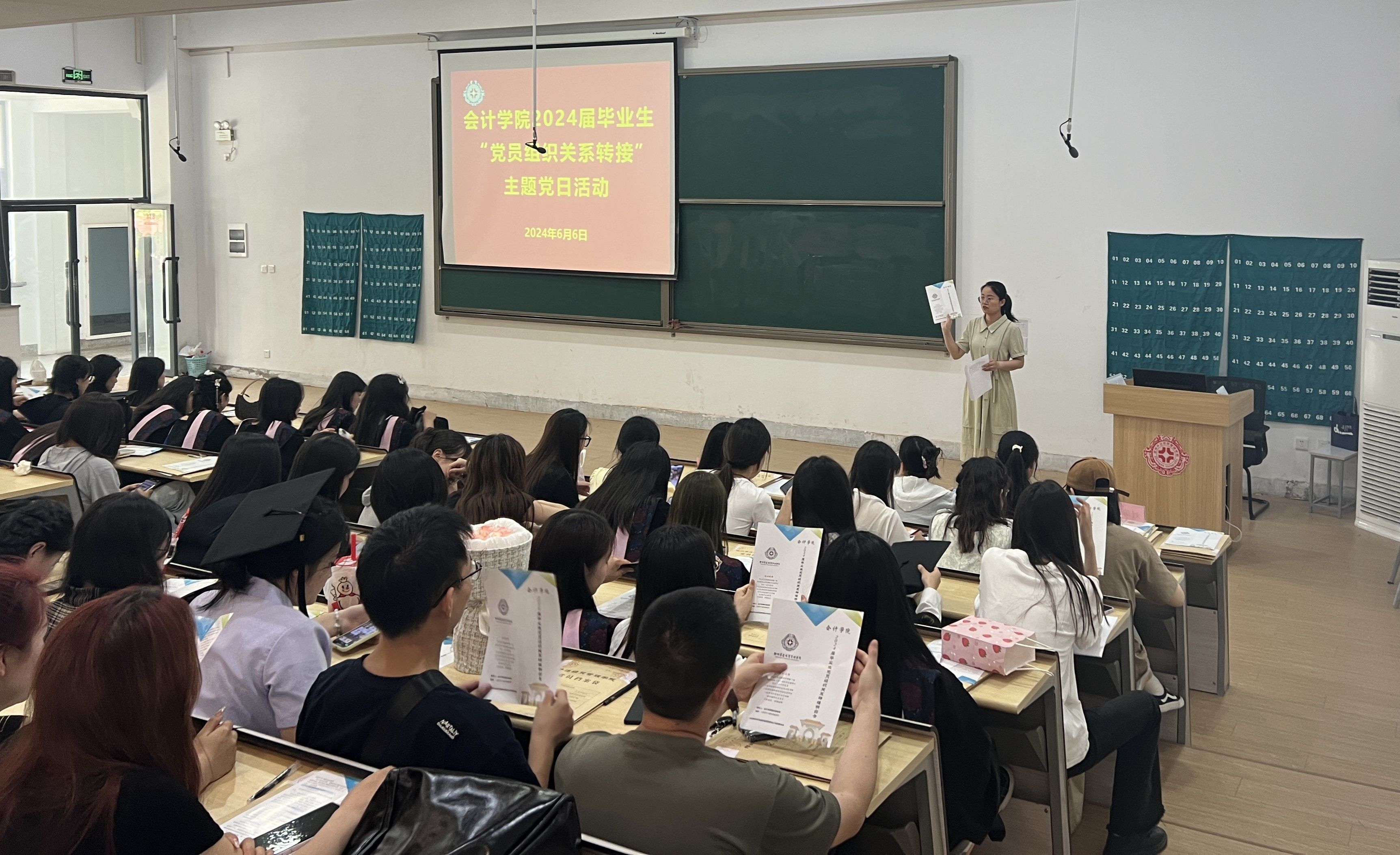 2024年6月6日,会计学院在教学4号楼118教室举行2024届毕业生“党员组织关系转接”主题党日活动。会计学院全体毕业生党员参加会议,会议由组织员曹会美老师主持。