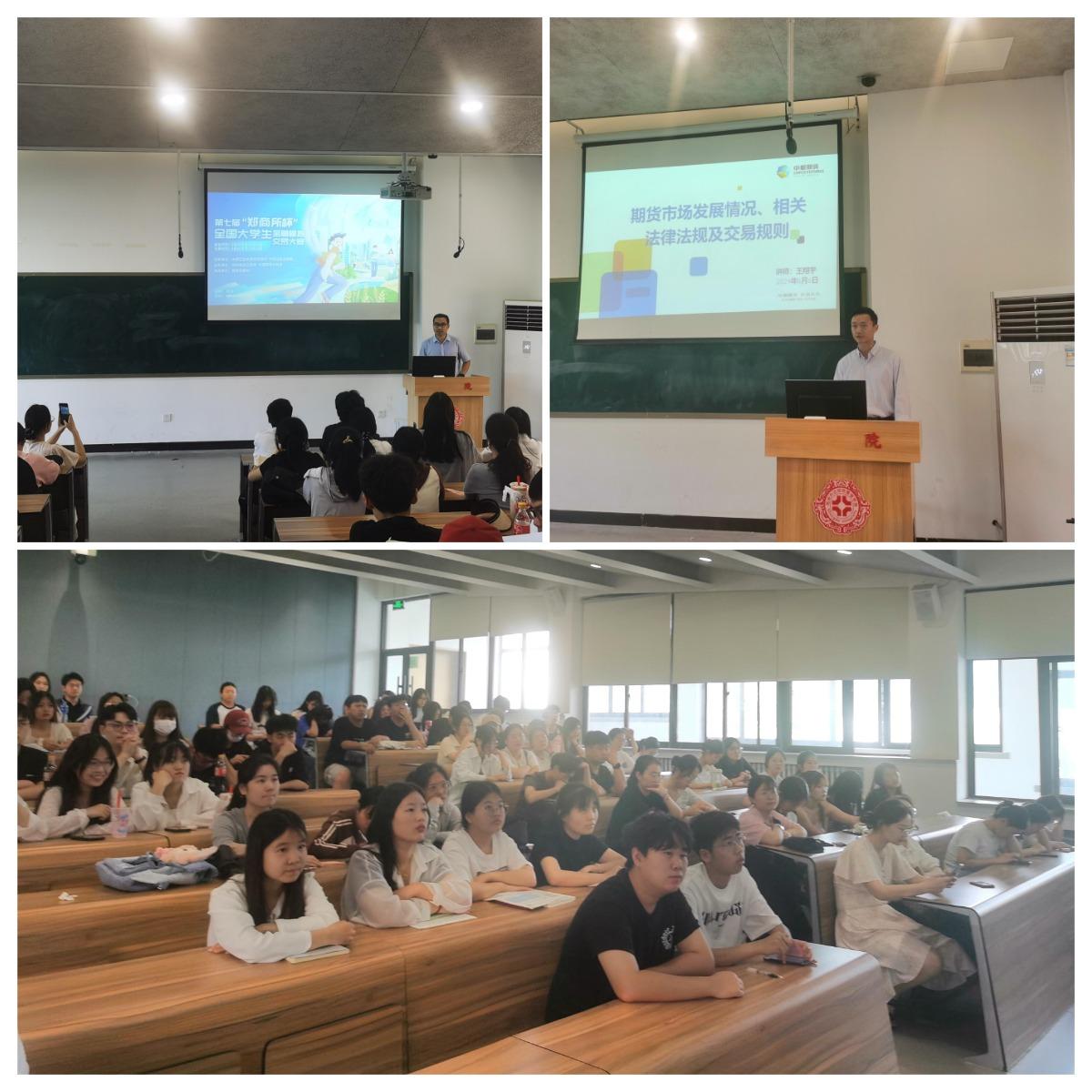 2024年6月6日,金融贸易学院联合中粮期货有限公司,于3号楼210教室举办第七届“郑商所杯”全国大学生金融模拟交易大赛宣讲会。中粮期货总监王翔宇、副总监张镇,金融学教研室主任李光举、指导教师代表及来自金融学、金融工程专业的100余名学生参会。宣讲会由温子奕老师主持。