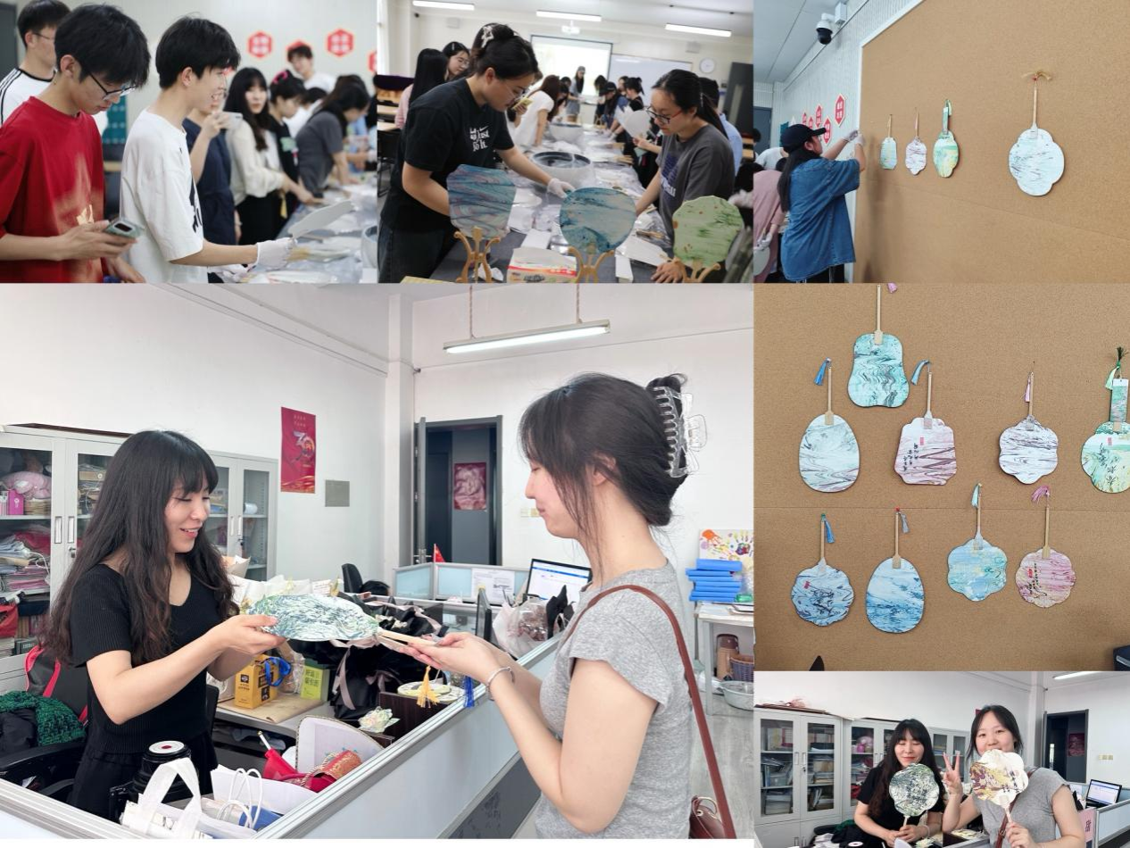活动伊始,艺术学院党委书记张小雁发表讲话,上次的支部漆扇活动很好,也得到了很好的反馈。结合我们现在的党纪学习教育,我觉得这是个很好的活动载体。恰逢毕业季,毕业生党员即将走向新的岗位。为了感谢各位毕业生党员为学院发展做出的贡献,今天我们在这里为毕业生党员制作漆扇和漆画书签,希望收到各位毕业生党员在未来的岗位中继续发扬党的优良传统,坚持党的思想学习、继续贯彻当下党纪学习教育。也希望各位委员、党支部书记、党员同学,发挥自己的创意、才能,为我们毕业生赠送一份称心的礼物。随后,进入到漆扇制作环节,漆滴入水,一场色彩的盛宴在水面上展开,每一滴漆都是一次灵感的闪光,每一把扇子都是一件独一无二的艺术品。各位老师、同学积极参与其中,他们发挥着丰富的想象力,选取喜欢的色调,转动着扇子入水,一把色彩绚丽的漆扇就诞生了。活动中,恰逢校友回校参观,校友也积极加入本次活动,愿意为毕业生党员的画扇贡献自己的创意。本次活动共制作了50把漆扇、120枚书签。随后,各位党员同学一一为书签配好流苏装饰。这一把把扇子、一个个书签都承托着大家对毕业生党员的殷切期望。随后,漆扇和书签分发到各个毕业生辅导员处,待毕业生党员领取毕业材料时,收获艺术学院党委给予的这份温暖礼物。