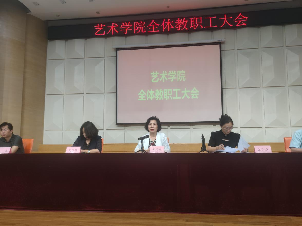 2024年6月6日下午,艺术学院在音乐厅召开全体教职工大会,学院院长吴柏林、院党委书记张小雁、副院长池浩东、副院长夏瑞芳,以及学院全体教职工均参加了会议,会议由教学秘书贠雯主持。