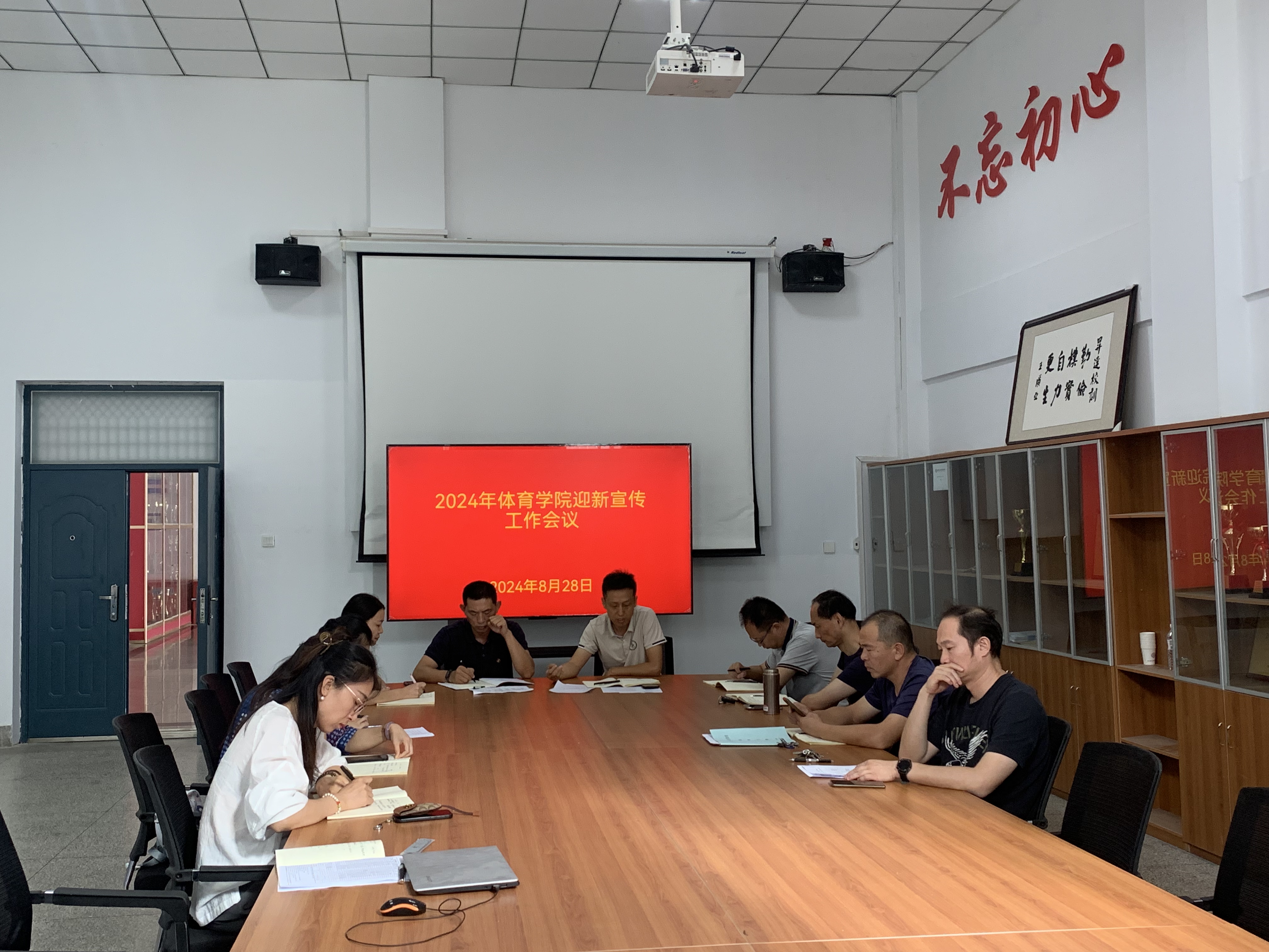 8月24日下午,体育学院在会议室召开迎接2024级新生宣传工作部署会。院长张王利、党委书记李松涛、教学秘书王培培、行政秘书高建涛、党总支宣传委员孙秋阳、各教研室主任和党支部书记参加会议。