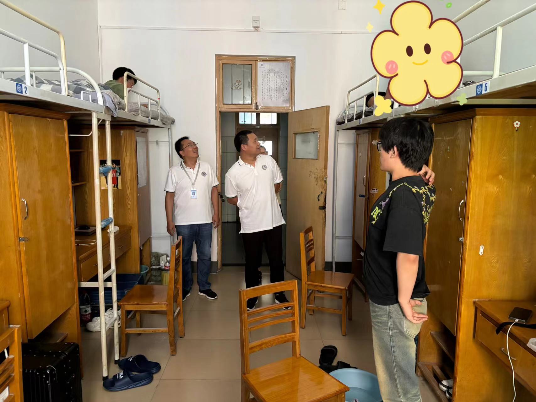 为深入了解商学院2024级新生的生活状况、思想动态以及住宿情况,传递学院温暖与关怀,8月31日新生报到第一天,商学院党委书记郭峰、院长白朋飞、行政秘书郗艳花及新生班辅导员来到新生宿舍,为新生送去暖心的关怀和问候。