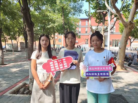 金秋开学季,启航新征程。为构建平安和谐的校园环境,提升新生识邪、辨邪、拒邪、防邪的意识和能力,校园迎新期间,会计学院党员志愿者开展“树牢国家安全观 崇尚科学树新风”的反邪教宣传活动。