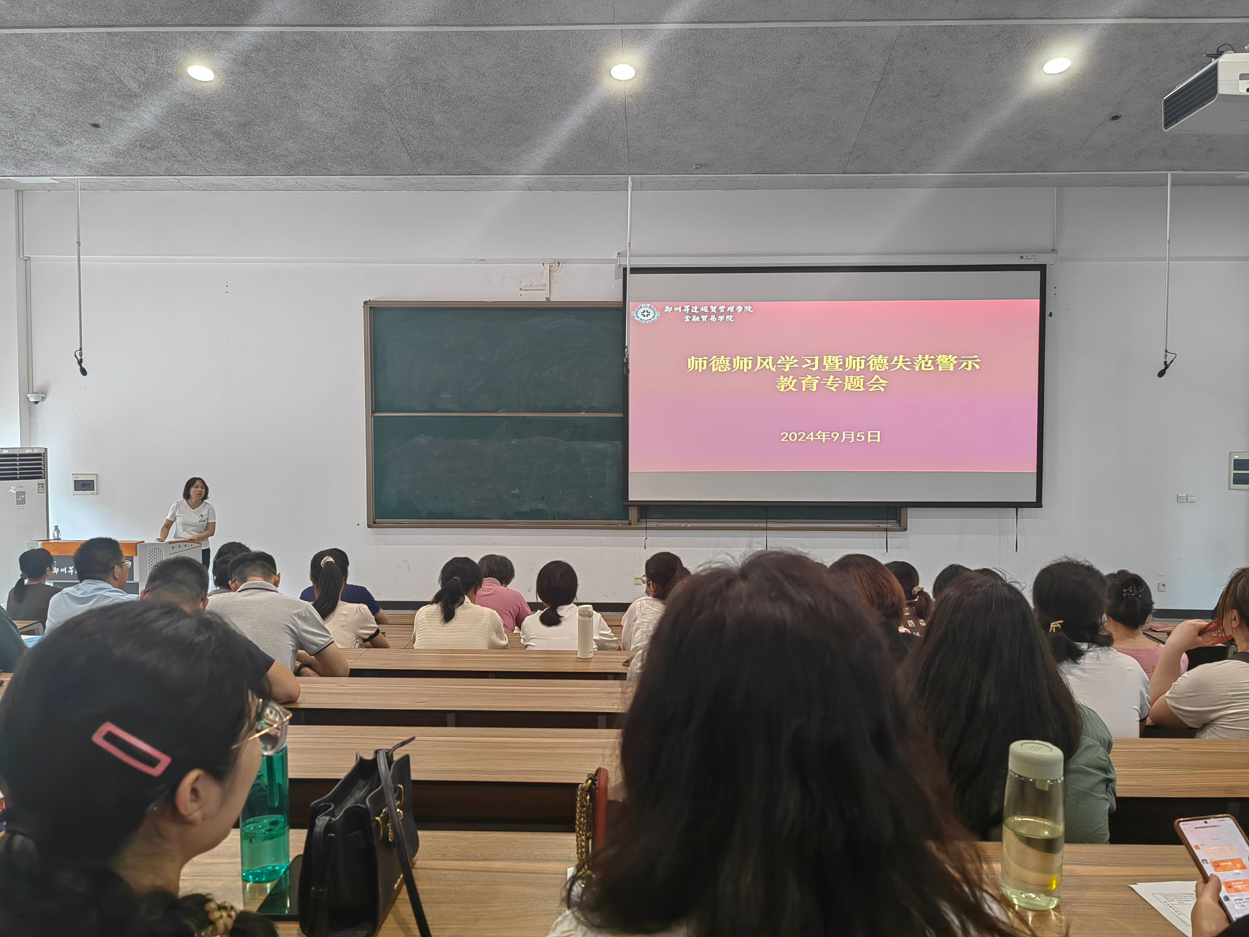 9月5日,金融贸易学院党委在教学3号楼107会议室组织召开师德师风学习暨师德失范警示教育专题会议。会议由学院副院长、纪检委员杨毅主持,学院全体教职工参加。