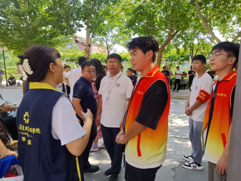 携一纸锦书邀约,赴一场青春旅程。会计学院2024级新生带着对未来的憧憬和期待,踏入了这片梦想的土地。为迎接新同学的到来,会计学院对于迎新工作精心规划部署,为学子们保驾护航,助力会计学院新生顺利开启梦想新征程。新生报到之日,会计学院院长张景空,党委书记张蕾,副院长张新成、毕鹏翾和行政秘书兼团委书记陈刚对迎新工作进行了视察,了解志愿者的值班状況和新生报到情况,提出指导性建议,同时对有序高效的迎新工作给予了充分的肯定。