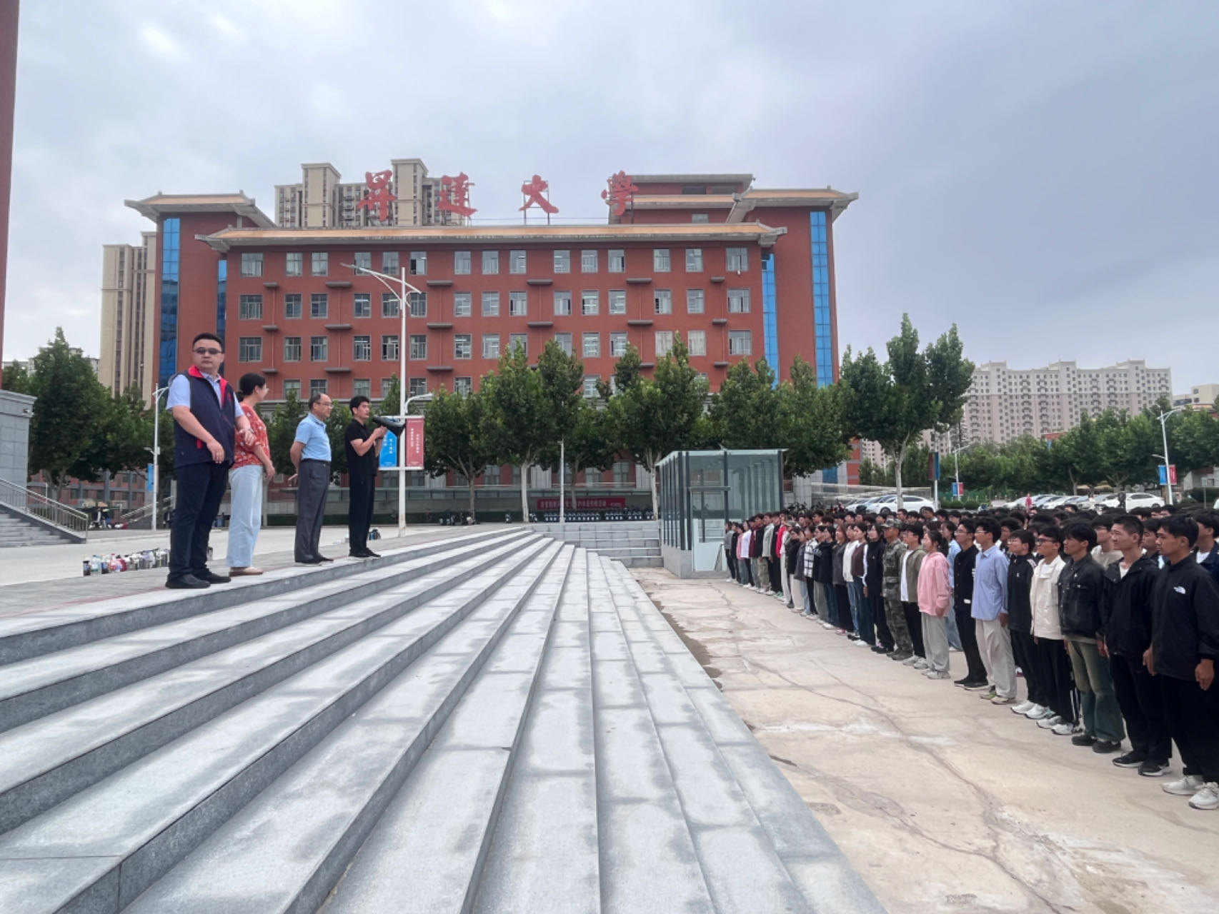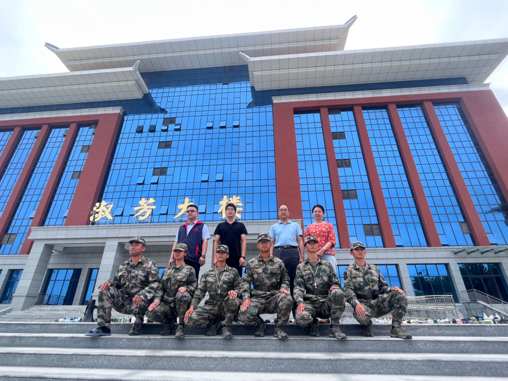 2024年9月12日,在中秋佳节来临之际,机电学院院长张三川、党委书记丁向育、行政秘书朱帅、教学秘书李灵焕一行深入军训现场看望军训教官及参训学生。