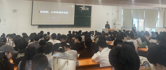 宣讲会伊始,深圳百果园实业股份有限公司人事主管王亚宁经理向在场的同学们介绍了百果园的基本情况、企业文化和发展理念。他表示,百果园秉承“成为全球领先的水果生态科技型公司”的愿景,追求企业与员工、企业与社会之间的和谐发展,使同学们对未来职业发展规划充满美好愿景。