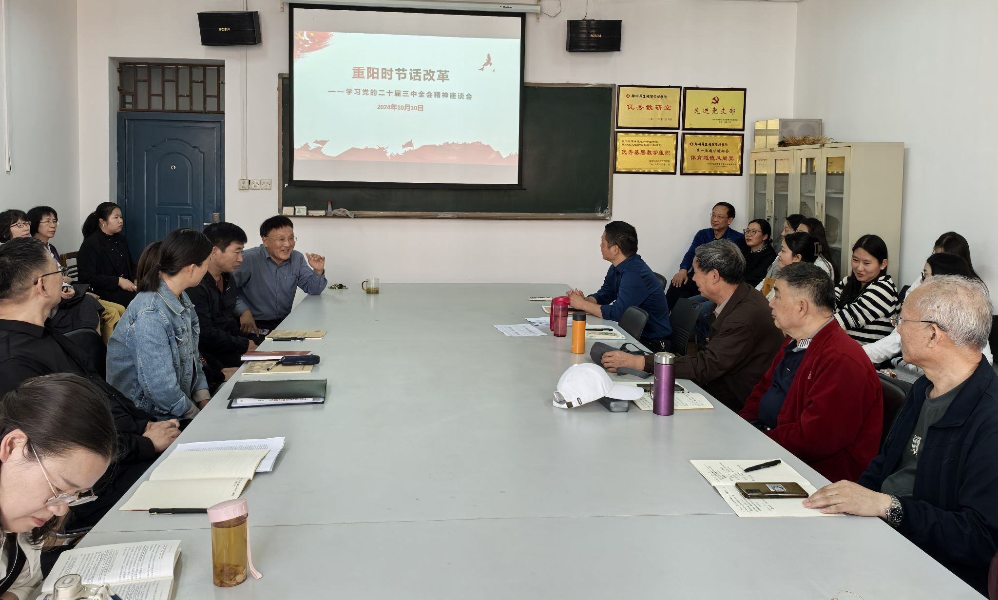 10月10日,马克思主义学院在综合楼211室召开进一步学习贯彻党的二十届三中全会精神研讨会,院长程明欣、党委书记窦峰、副院长何涛、教学秘书苗淑娟以及全体教师参加会议。