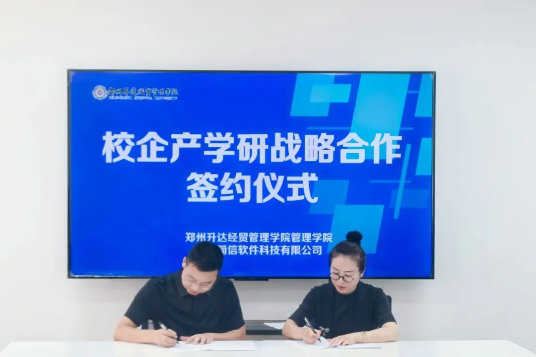 2024年10月11日,管理学院在升达工业元宇宙行业学院108室,举行了隆重的“校企产学研战略合作”签约仪式。管理学院院长朱影影、郑州简信软件科技有限公司总经理郭松超、管理学院和行业学院教师代表共同出席了签约仪式。仪式由升达工业元宇宙行业学院副院长李延保主持。