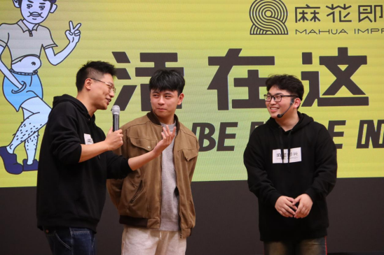 本次演出以无实物、无剧本、无排练为三要素的“三无”即兴戏剧,演员全程根据现场观众给出的关键词,用天马行空的脑洞碎片、堪比光速的即时反应和丰富的肢体语言即兴起戏,为现场观众带来了《我是一棵树》《我喜欢你,是因为......》《我迟到了》《吐司机》和《三个物品》等主题即兴表演。