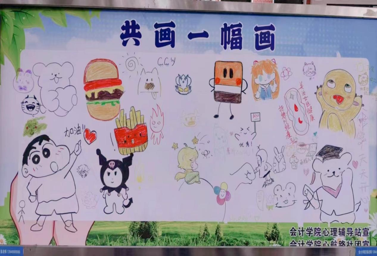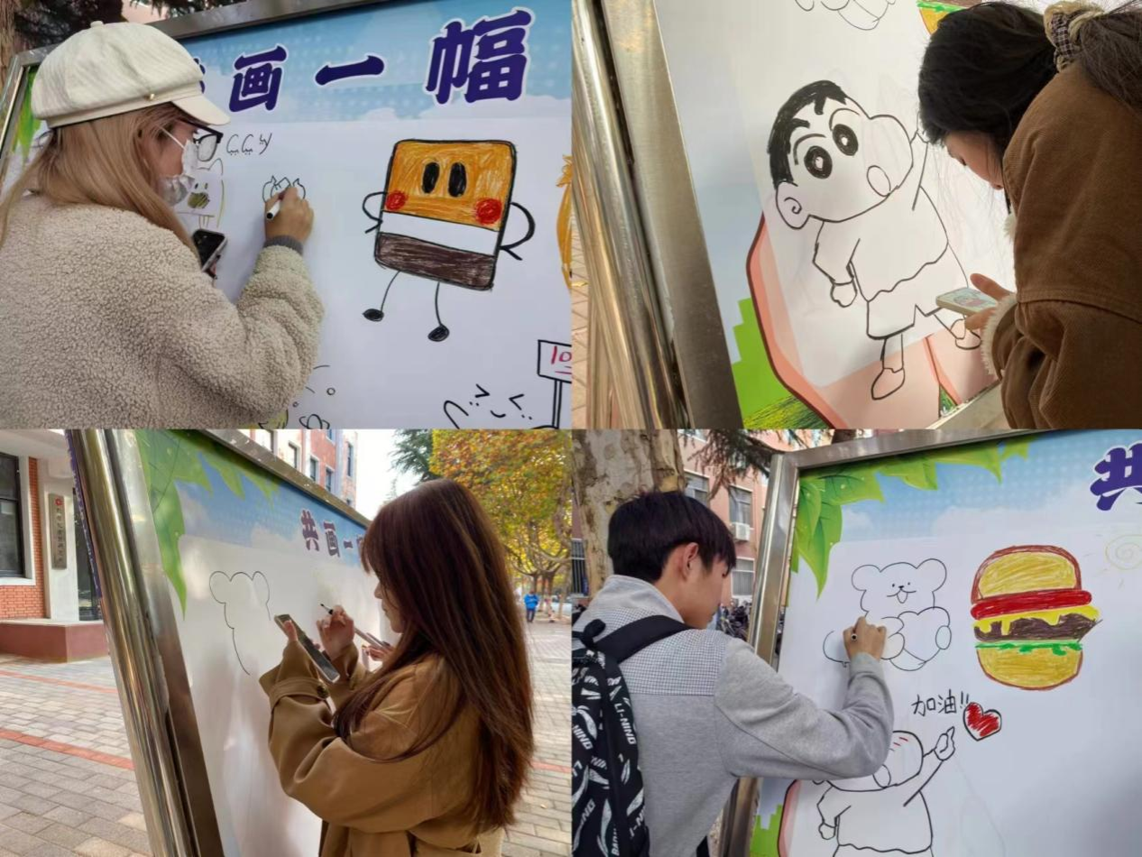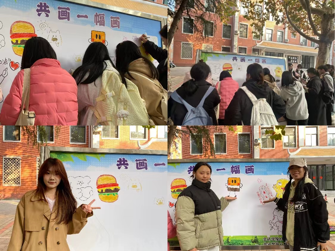 2024年11月21日,由会计学院团委主办、会计学院心航路社团承办的以“共创心灵画卷 携手绘梦计划”为主题的心理健康教育活动在教学三号楼前举办,本次活动旨在通过艺术创作的形式,促进同学们之间的交流与合作,激发大家的创造力和想象力,帮助同学们以健康、阳光、乐观的心态积极面对美好生活。