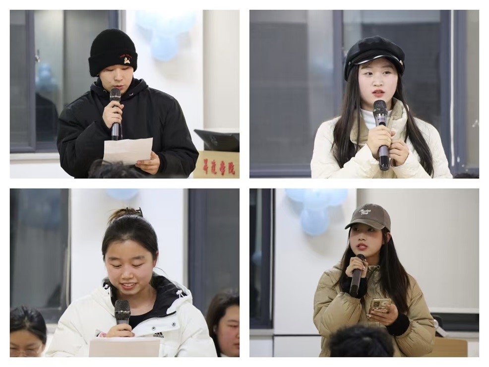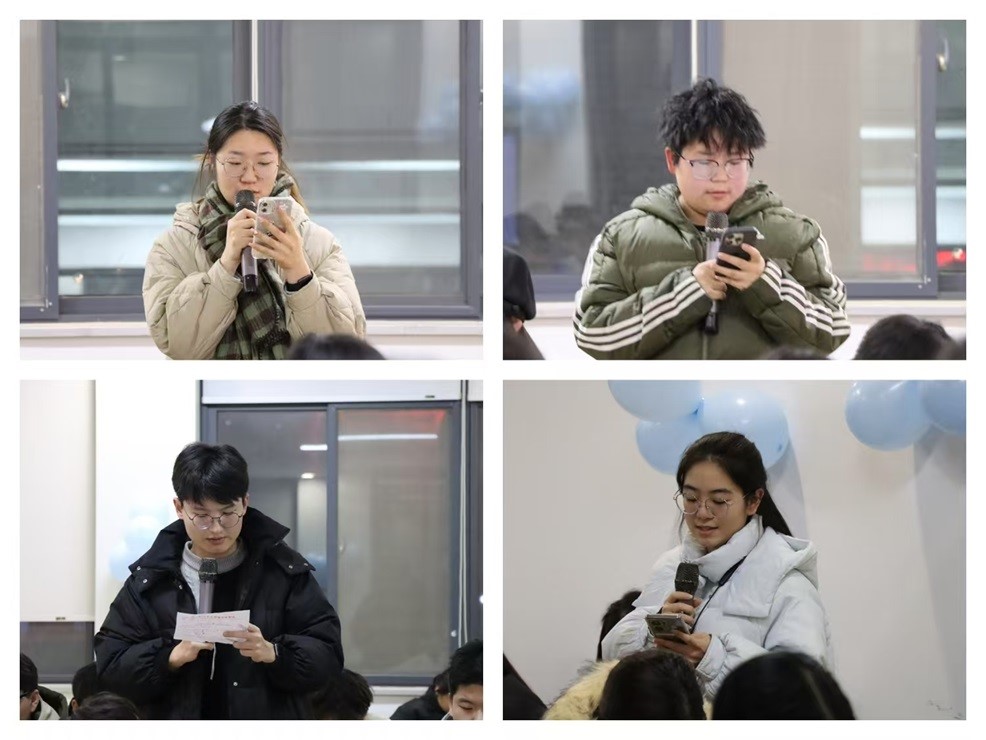 在发言期间,陈刚老师和胡淑娟老师也实时给予各部门相应的意见与建议,进一步强调各部门工作的重要性。在大家交流分享的同时,为活跃气氛、增进交流,还穿插了击鼓传花活动。伴随着鼓声,花团在同学们之间快速传递,现场气氛紧张又热烈,鼓声停止,拿到花的同学轮番表演节目,有幽默的笑话、动人的歌声,现场欢声笑语不断,一度将气氛推向了高潮。