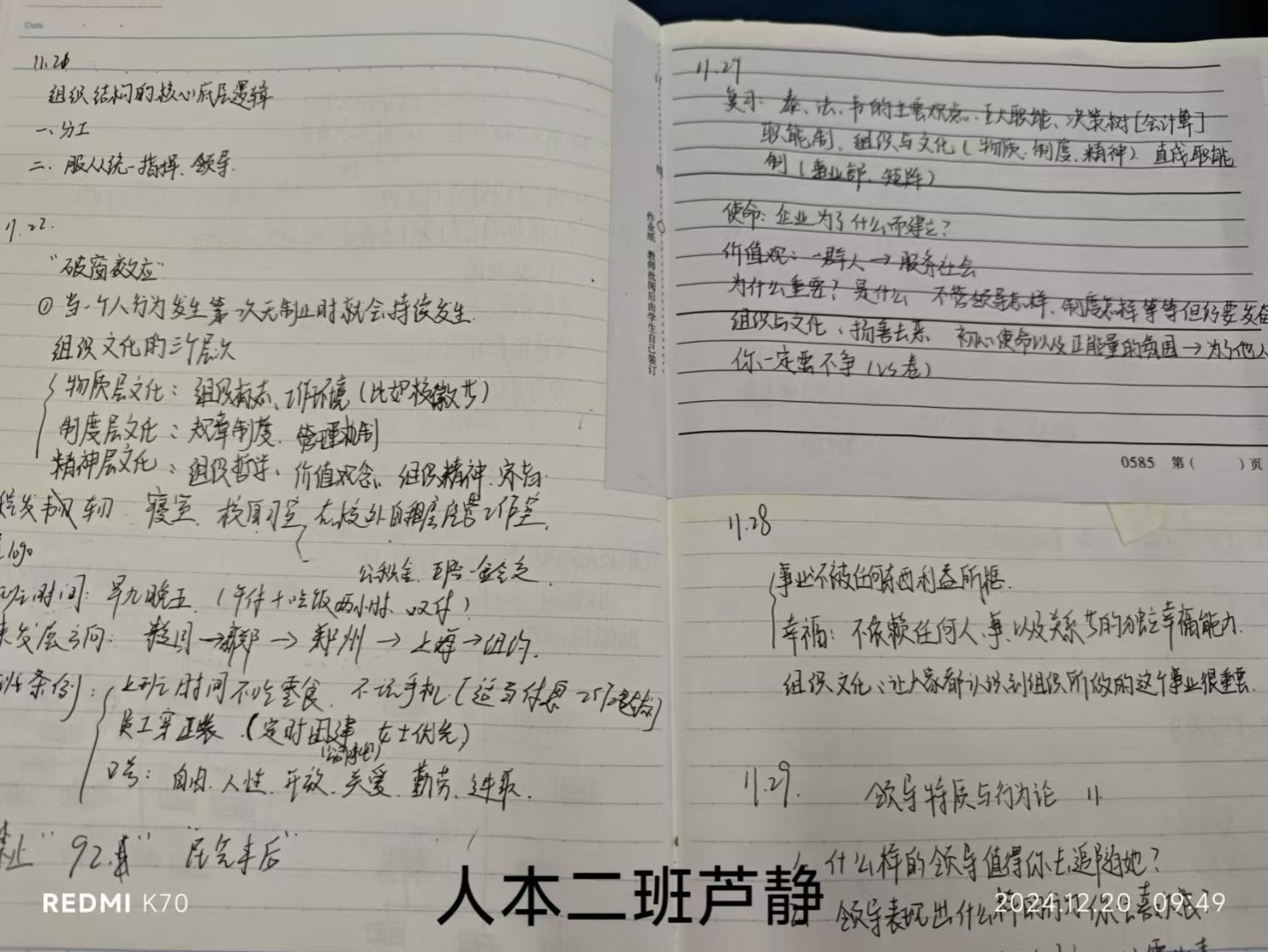 这些笔记字迹工整,备注详尽,重难点标记清晰,充分展现管理学院同学们踏实严谨的学习态度和积极向上的精神状态。这不仅是对学生们学习成果的一次检验,更是对他们学习态度和方法的一次引导。学无止境,笔耕不息,将每日所获得的知识存于笔下,它不一定是最美的笔记,但是一定是最有意义的!一页一页的笔记记录着知识的海洋,帮助学生们加深对知识的理解,指引管理学子们通向学习的山峰。笔墨之林,厚“记”薄发。每一份笔记都凝聚着学生们的勤奋与智慧,彰显出学生们勤勉认真的优秀品质。