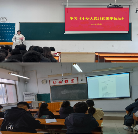 我院高度重视此次学习活动,要求各班级要认真组织、周密安排。在学习过程中,各班级按照学院要求,通过主题班会、集体学习、小组讨论等多种形式,深入学习《中华人民共和国学位法》的各项规定,同时,特别强调了学位授予工作的严肃性和重要性,要求全体人员要严格遵守《中华人民共和国学位法》的规定,确保学位授予工作的公平、公正。同学们纷纷表示,通过学习,对学位授予的流程、条件和要求有了更加清晰的认识,也更加深刻理解了《中华人民共和国学位法》的重要性和必要性,非常有意义。