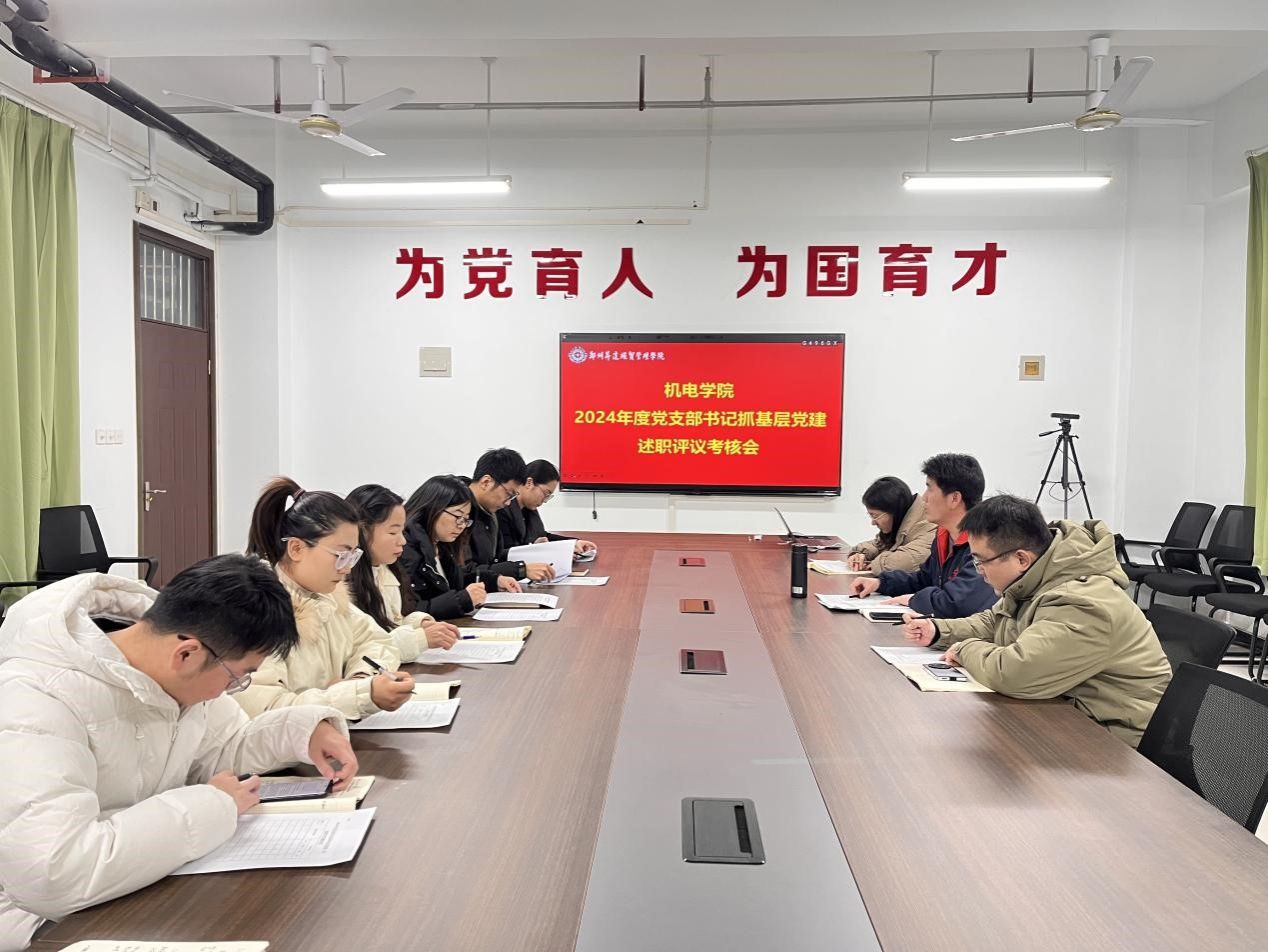 为强化党支部书记抓基层党建工作主体责任,提升基层党建工作质量,按照校党委《关于做好2024年度党组织书记抓基层党建述职评议考核工作的通知》文件要求,机电学院党委于1月7日在实训大楼524会议室召开2024年度党支部书记抓基层党建述职评议考核会议。全体党委成员、各党支部书记、党员代表参加了此次会议,会议由院党委书记丁向育主持。