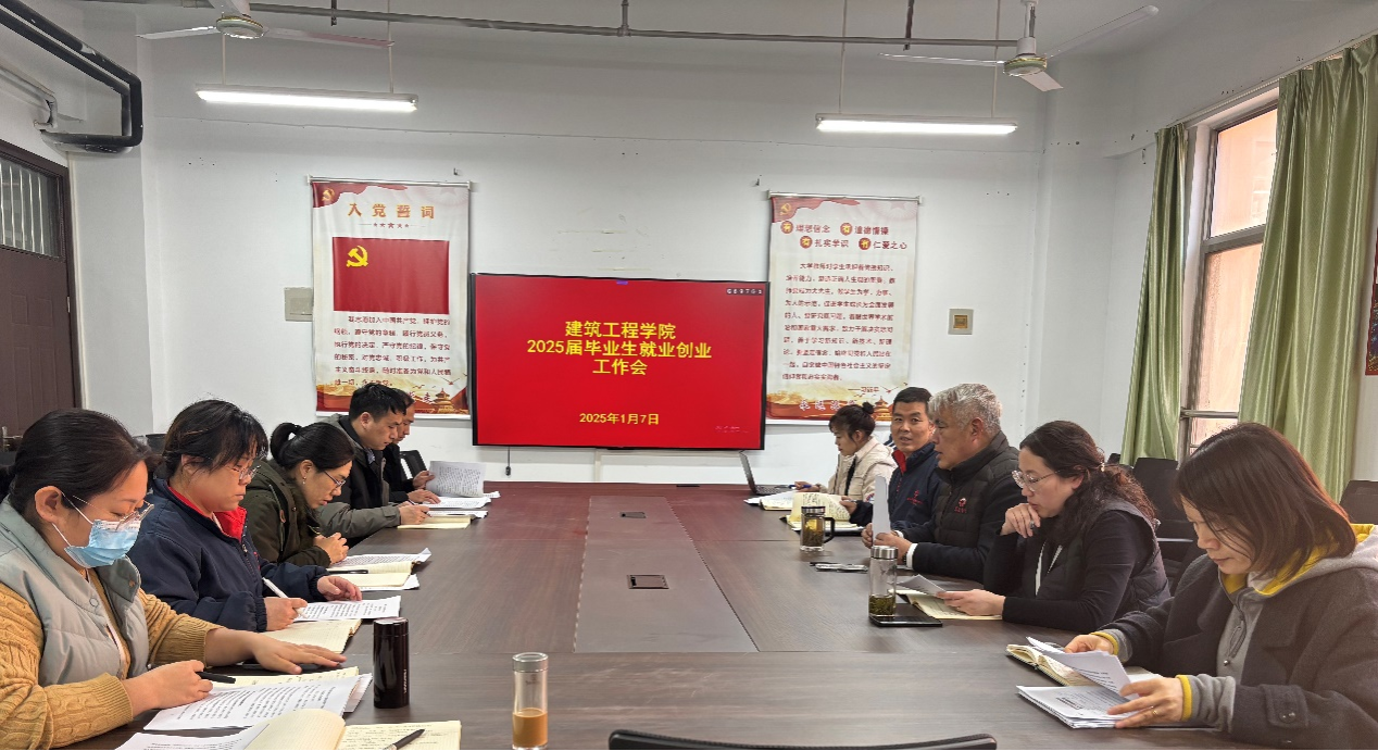 为落实上级和学校关于做好2025届毕业生就业创业工作的部署安排,做好我院2025届毕业生就业创业工作,建工学院于1月7日下午召开了2025届毕业生就业创业工作专题会。院长杨开云、院党委书记韩炎涛、副院长高燕、教学秘书刘杰、行政秘书支园园及全体教研室主任参加了本次会议。