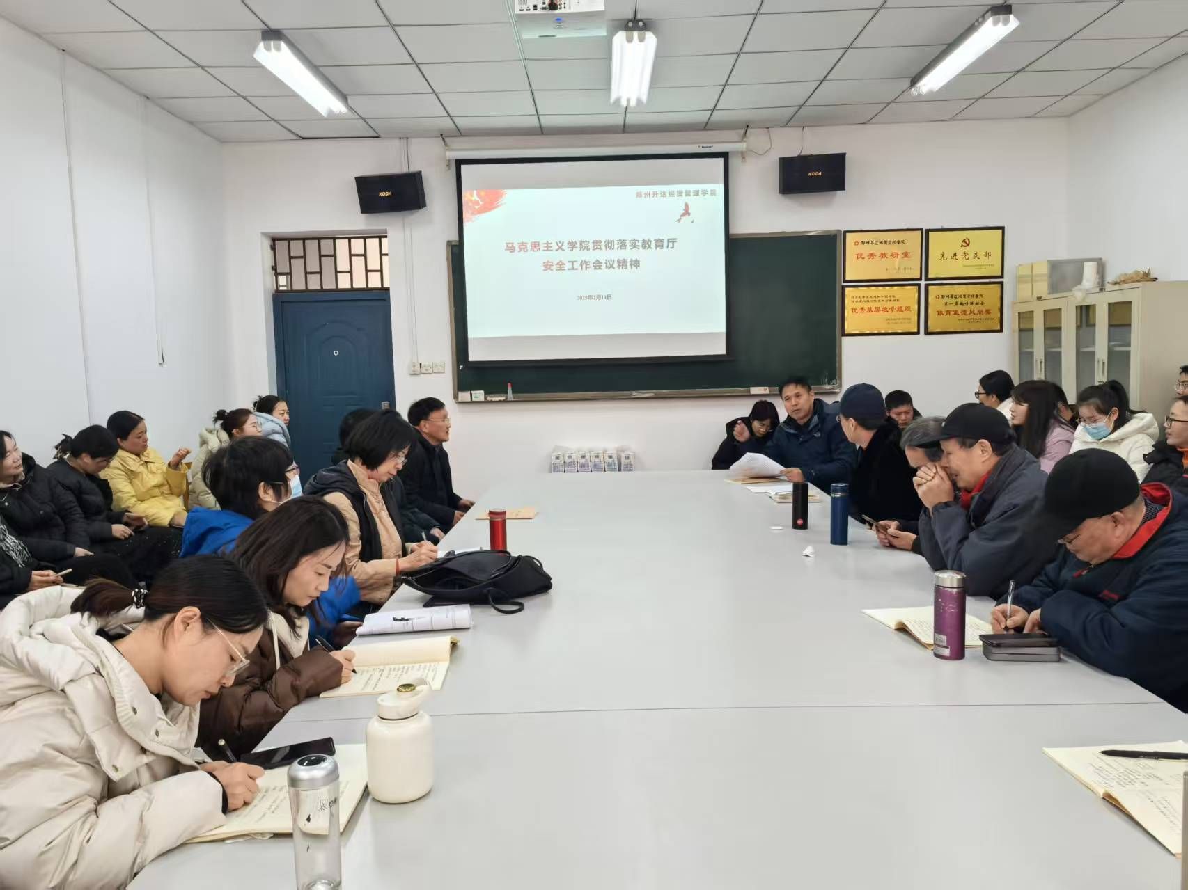 为贯彻落实省教育厅安全会议精神,2025年2月14日,马克思主义学院在综合楼211会议室召开安全工作布置会。全院教职工参会,会议由学院党委书记窦峰主持。