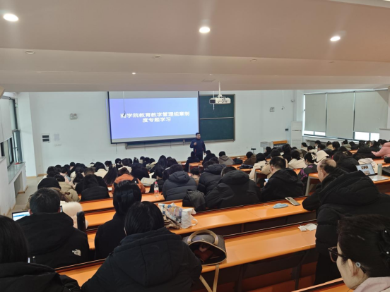 白院长首先回顾了上学期教学工作取得的成绩,并对全体教师的辛勤付出表示了感谢。他从三个方面对新学期教学工作进行了部署,第一,明确三项重点工作包括:审核评估、目标考核、专业发展。第二,明确三个工作思路包括:抓主要问题、调查研究、集思广益。第三,掌握三个工作方法包括:目标计划、优秀示范、总结反馈。