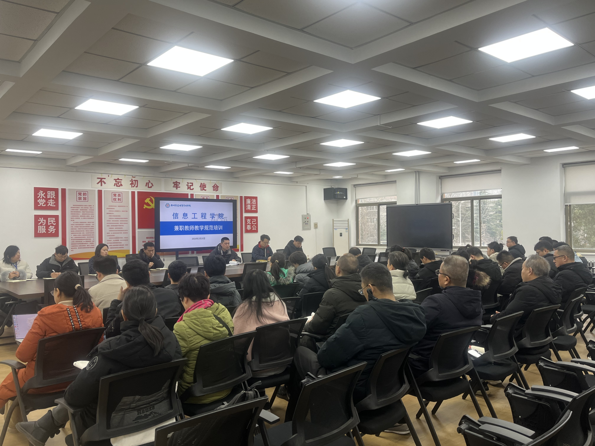 为进一步规范外聘教师教学行为,保障教学质量,2025年2月20日,信息工程学院在218会议室组织召开了外聘教师教学规范会议。会议由程杰副院长、教学秘书赵会燕,各专业教研室主任以及学院全体外聘教师参加。