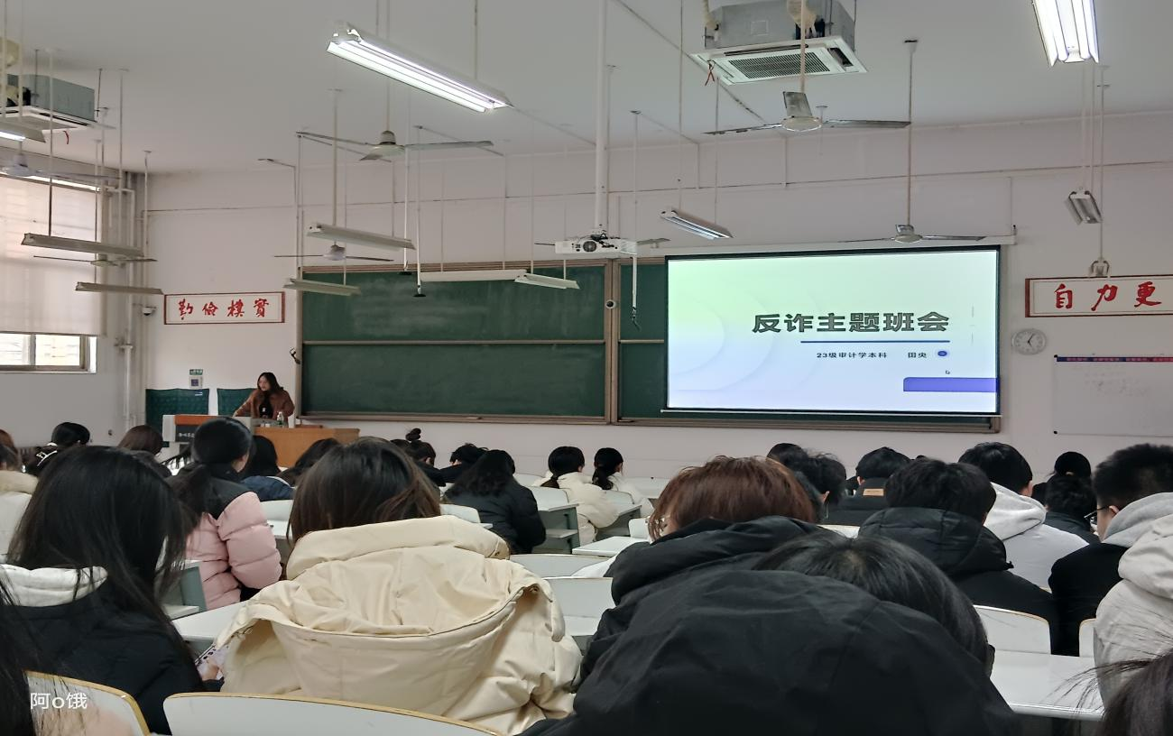 班会伊始,辅导员老师们播放了关于大学生遭遇网络诈骗的短视频,通过真实案例让学生直观感受到网络诈骗带来的危害以及防范网络诈骗的必要性,接着,通过案例分析、学生互动问答方式,辅导员老师重点围绕以下几点内容进行详细讲解:(一)校内交通安全教育。教育学生不骑电动车进校,自行车规范停放、安全行驶(不超速、不带人、不逆行),不在指定区域以外为电动车充电。(二)关注个人身心健康。引导学生勤洗手、常通风、坚持锻炼身体,完成每天8000步运动计划,保持平和健康的心态,遇事不慌张不抱怨,积极寻找解决方案并及时向老师汇报。(三)防范网络诈骗。通过分析“刷单返利”“冒充亲友”“游戏充币”等常见骗局,要求学生不刷单、不添加陌生好友、不下载违禁APP、不轻信、不转帐、不透漏个人信息。守好钱袋子,不给诈骗分子可乘之机。(四)消防安全。要求宿舍内不使用违章电器、杜绝私拉电线,同时讲解宿舍用电安全、实验室操作规范及火灾逃生技巧。