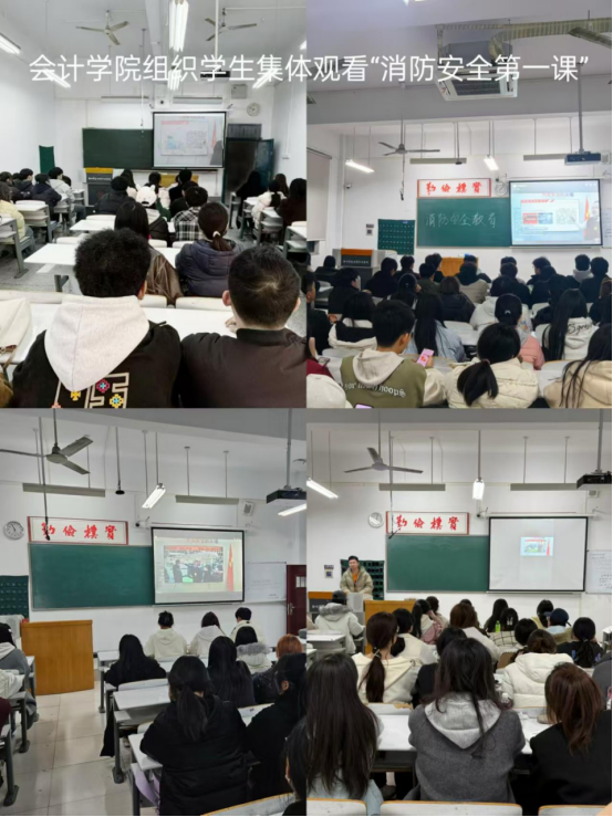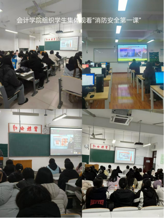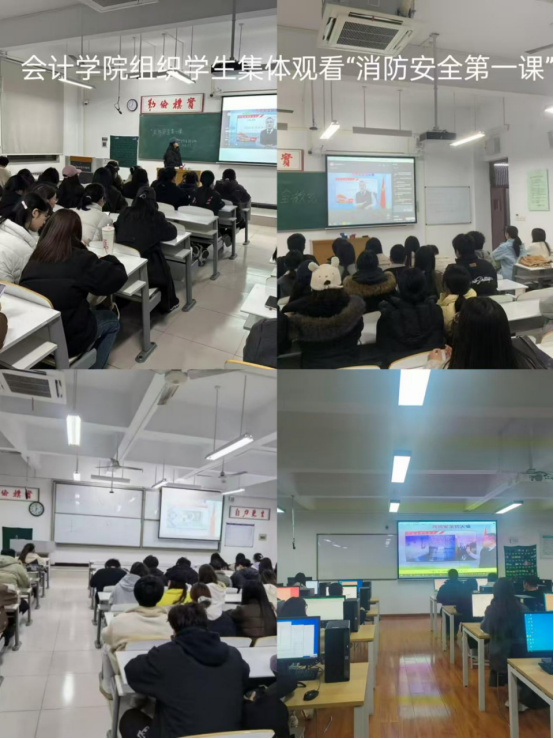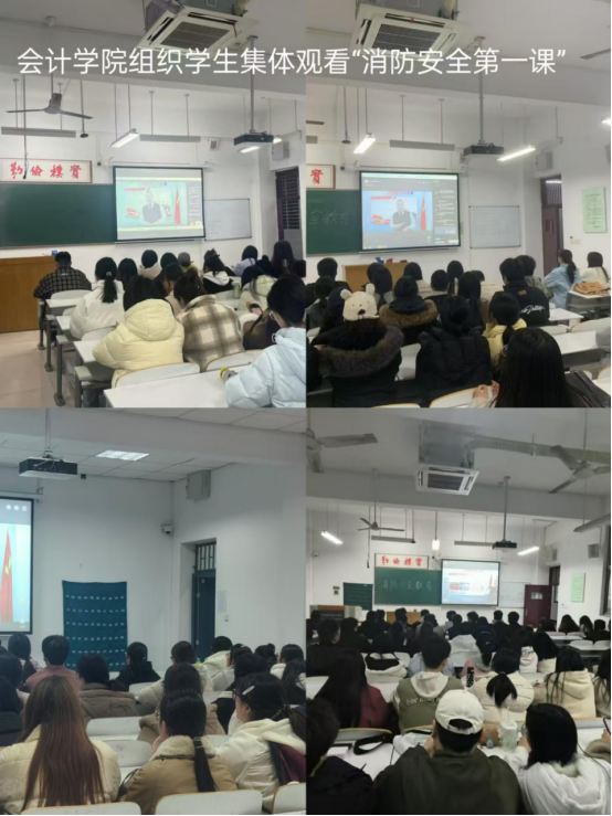为切实增强我院学生的消防安全意识,提升火灾应急处置能力,会计学院高度重视、周密部署,于2月27日晚19点,组织各班学生集体观看“消防安全第一课”,此次学习活动覆盖了学院全体学生,在校园内营造出浓厚的消防安全学习氛围。