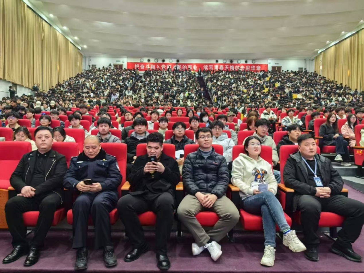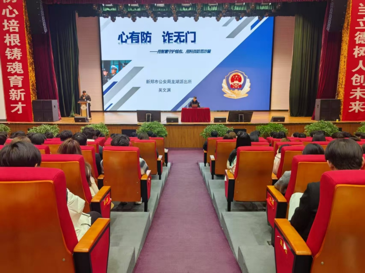 2025年2月27日下午6点,一场别开生面的反诈宣传活动在思源会馆举行。此次活动由新郑市公安局龙湖派出所民警吴文渊担任主讲人,旨在提高师生的反诈意识,有效防范电信诈骗,信工学院行政秘书兼团委书记王崇、辅导员以及2000余名学生参加了本次讲座。