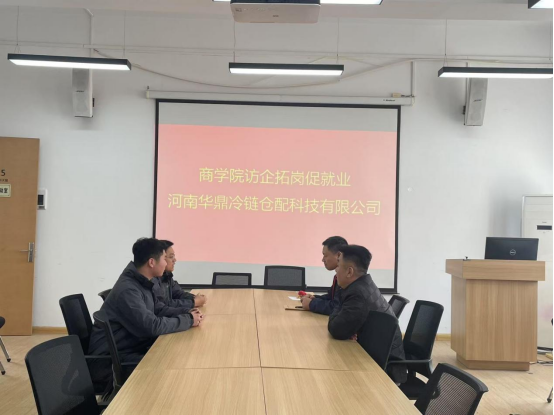 为拓宽毕业生就业渠道,了解企业需求,拓展合作领域,2月28日上午,河南华鼎冷链仓配科技有限公司一行莅临商学院洽谈校企合作事宜。
