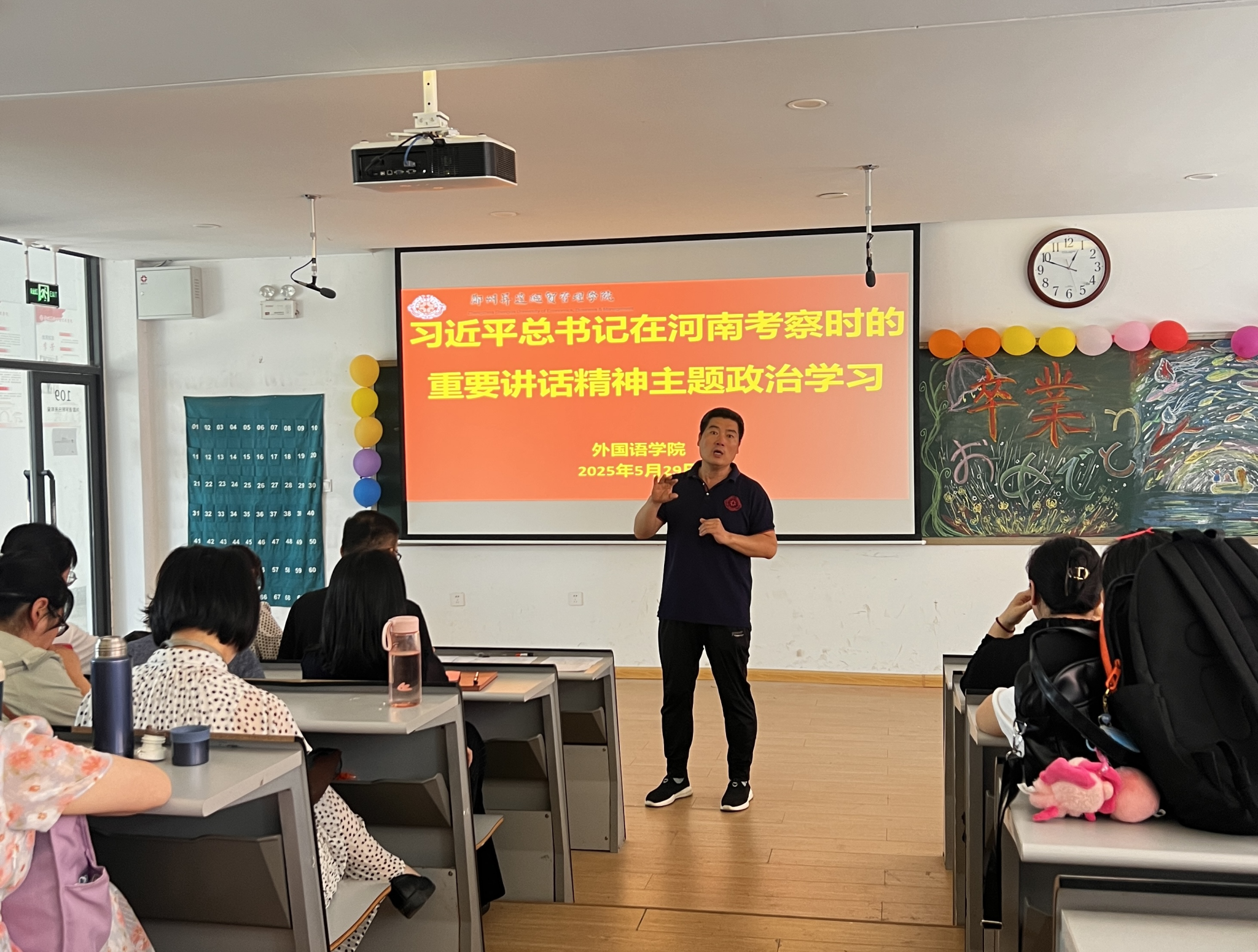 此次政治学习,通过对习近平总书记近期考察河南时的重要讲话精神,拓宽了外国语学院教职工的视野,强化了政治意识与使命感,为学院在教育教学、文化交流等工作开展上注入了新的精神动力。