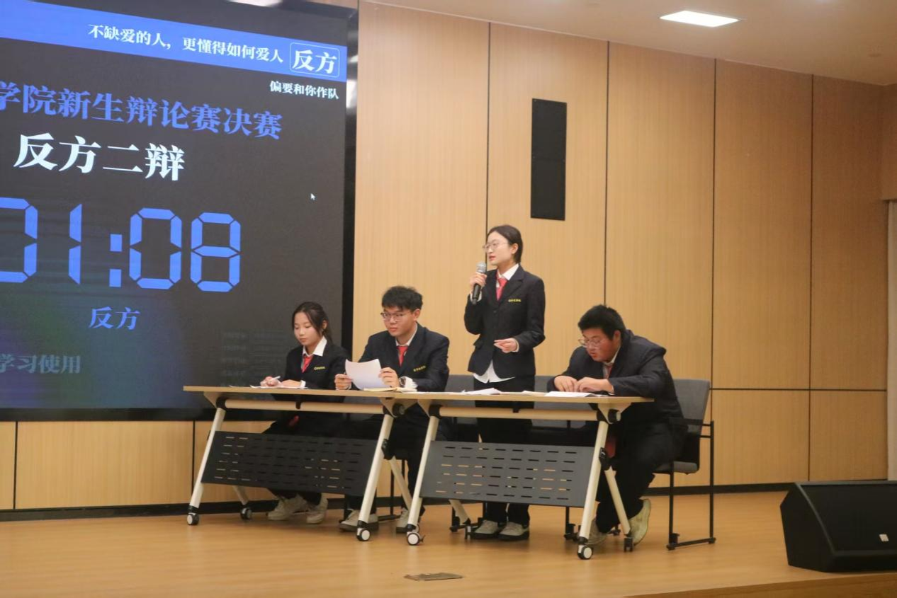 “言为心声,辩以明理。”为搭建学生思想交锋平台,锤炼逻辑思辨与语言表达能力,营造笃学善思的学习氛围,管理学院2025级新生杯辩论赛决赛于11月20日18:30在新图书馆二楼第一报告厅正式拉开帷幕。出席本次辩论赛的嘉宾有:2025级新生辅导员任素伟老师、第28届主席团成员、评委薛行健学姐、潘小静学姐、朱靓芸学姐以及本次参赛选手。