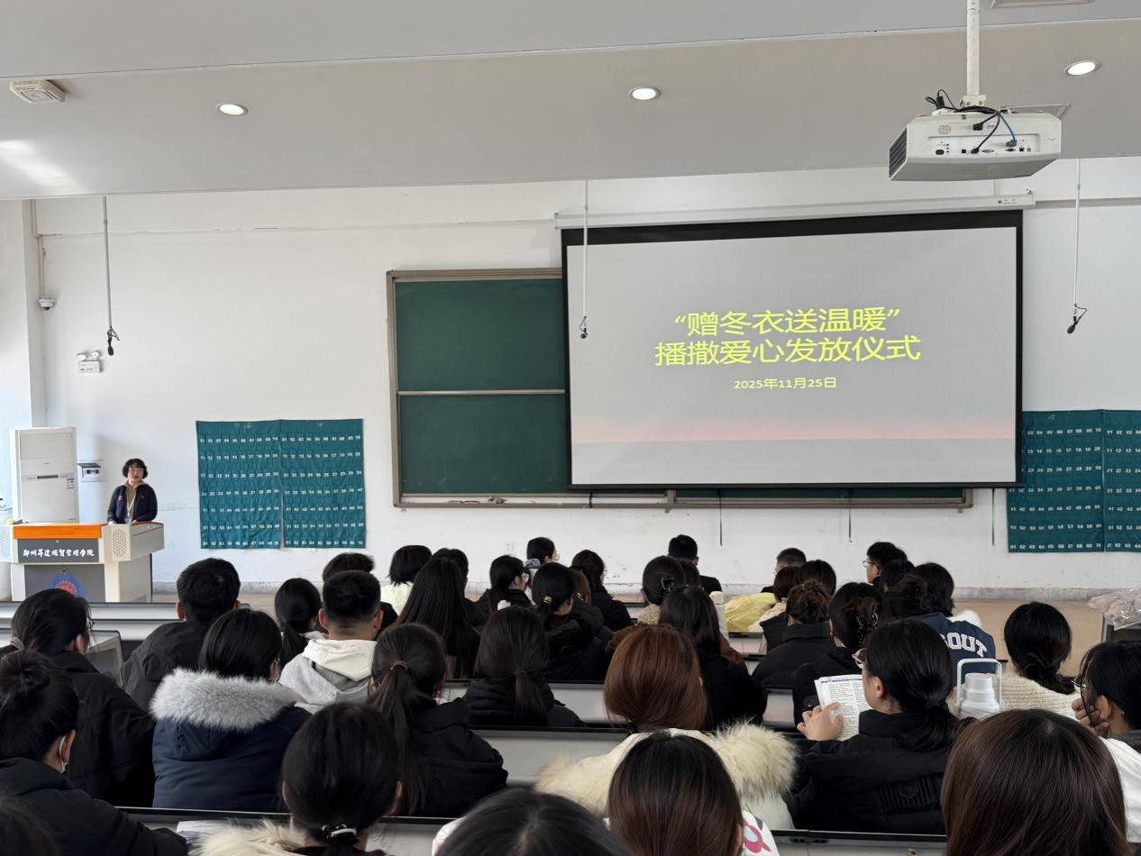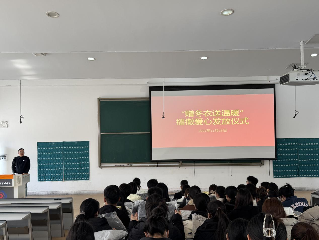 寒冬将至,温情先行。为切实做好家庭经济困难学生资助工作,把学校的关心关爱落到实处,帮助学子抵御严寒、安心求学,11月25 日,文法学院隆重举行“赠冬衣送温暖”棉衣发放活动。文法学院院长段丰乐、党委书记刘晓川、党委副书记郑玲玲,资助专员吴彦举、周怡帆及全体受助学生共同参与了此次活动,党委副书记郑玲玲主持此次活动。