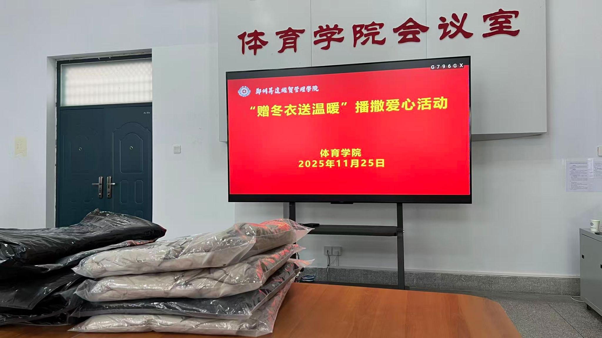 为切实保障家庭经济困难学生温暖过冬,11月25日,我院在体育馆会议室开展的“赠冬衣送温暖”播撒爱心活动顺利举行。学院党委书记韩炎涛、院长张王利和受助的学生参加了活动。