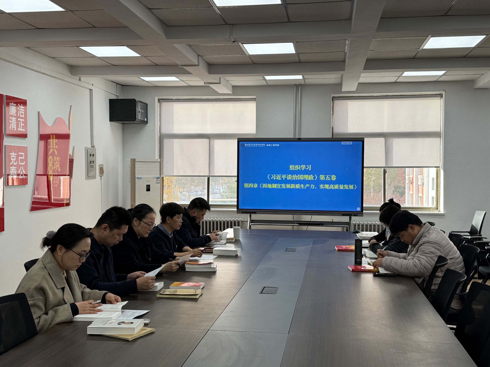 会议要求:一要深化理论学习,坚持集中学与自学结合,学深悟透党中央决策部署;二要优化学科布局,聚焦地方支柱产业、新兴产业及产教融合方向,培育实用型交叉学科优势;三要推动实践转化,将新质生产力理念融入教育教学、科研攻关、学生培养等工作,以产学研协同创新助力区域经济社会发展和学院高质量建设。