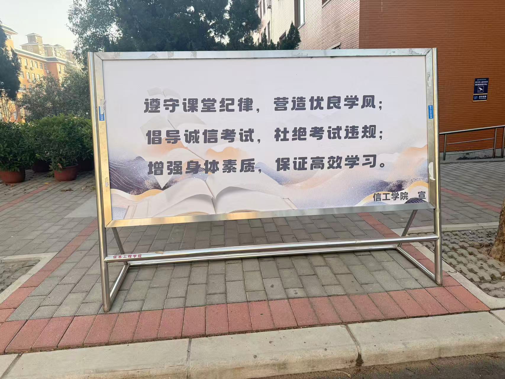 此外,学院精心制作系列宣传展板,以图文并茂的形式呈现活动主题、核心内容、评选标准及奖励机制,在校园公共区域集中展示,直观传递“遵守课堂纪律,营造优良学风;倡导诚信考试,杜绝考试违规;增强身体素质,保证高效学习”的价值导向,营造出浓厚的活动氛围,吸引广大学生主动关注、积极参与。
