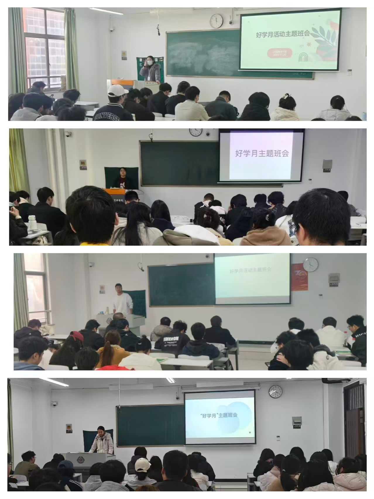 会后,各辅导员走进班级开展“好学月”主题班会。辅导员围绕活动主题,向学生讲解按时到课、专心听讲等课堂纪律规范,以及杜绝作弊、严肃考风等诚信考试要求,还介绍了学习与锻炼时间合理安排的方法,明确每日八千步锻炼达标要求。